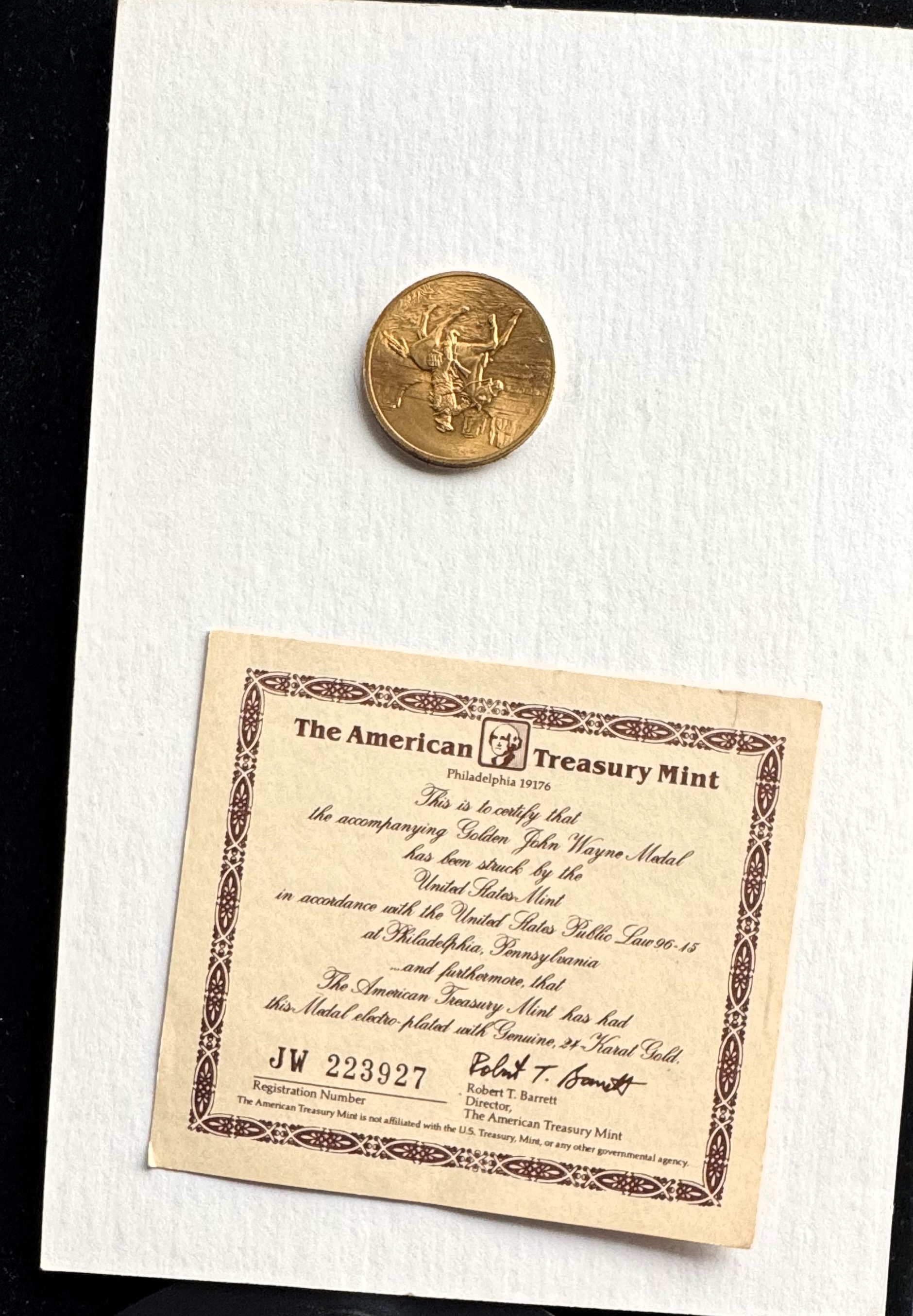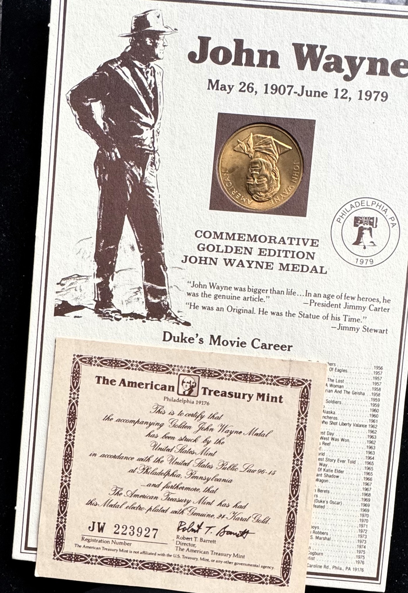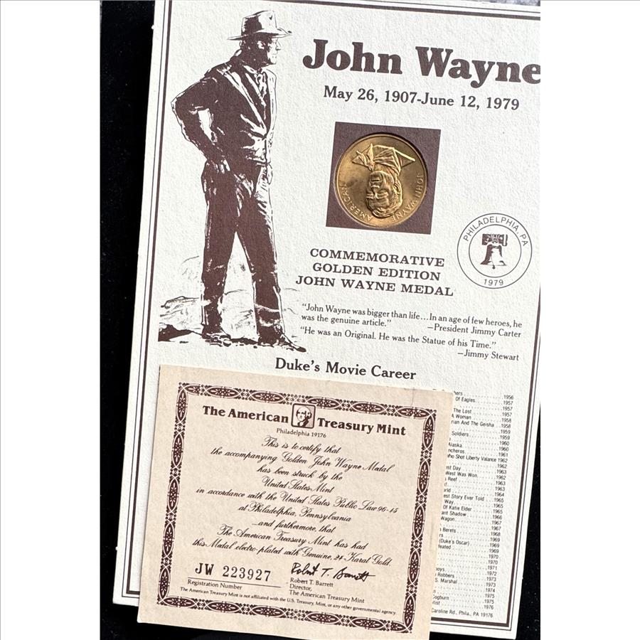 JOHN WAYNE DUKE'S MOVIE CAREER COMMEMORATIVE COIN, CERTIFICATE AND COA