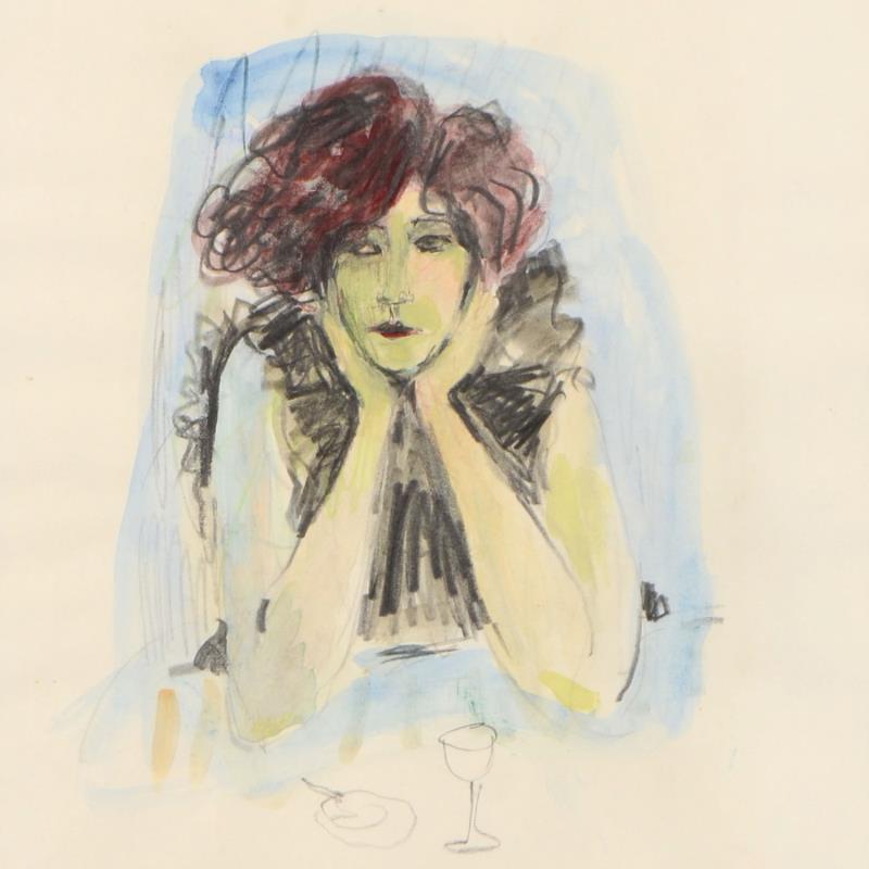 "Thinking" is an original watercolor painting on paper by Judith Bledsoe (1928-2013), hand signed by the artist. This piece comes framed. Includes Letter of Authenticity. Measures approx. 18" x 22" (frame), 7.5" x 10" (image).