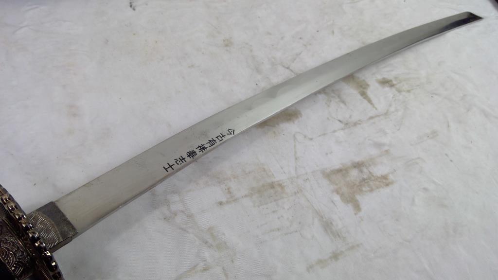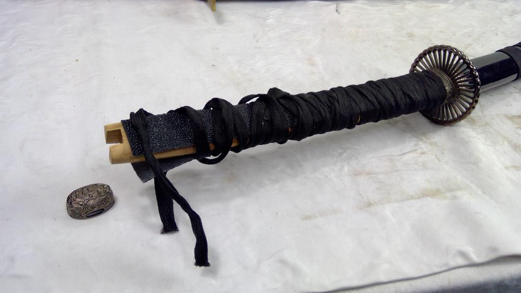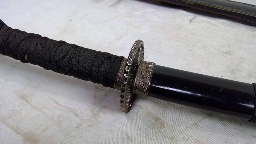 Katana With Black Sheath, And 41" Wooden Handle Sword, 2 Pieces