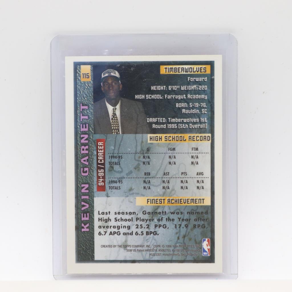 Kevin Garnett 1996 Topps NBA 1st Draft Trading Card