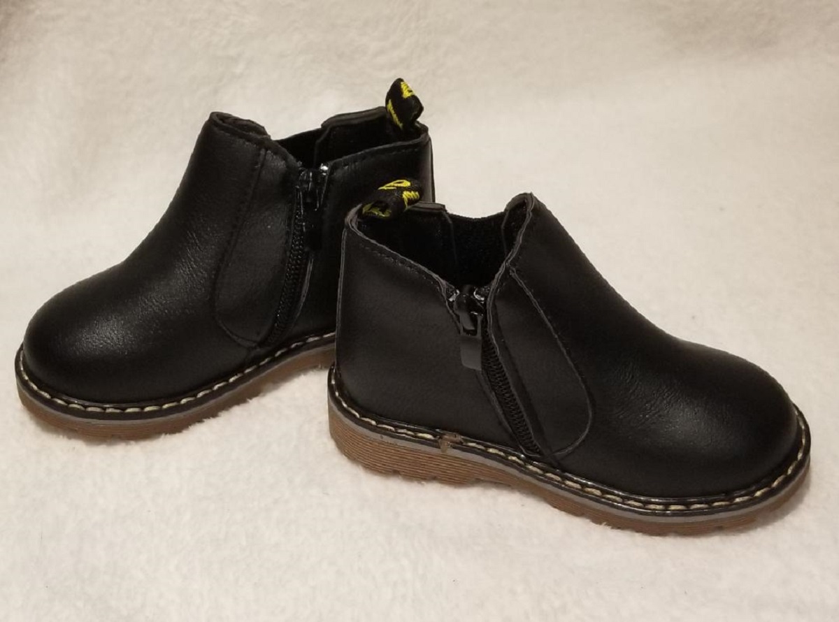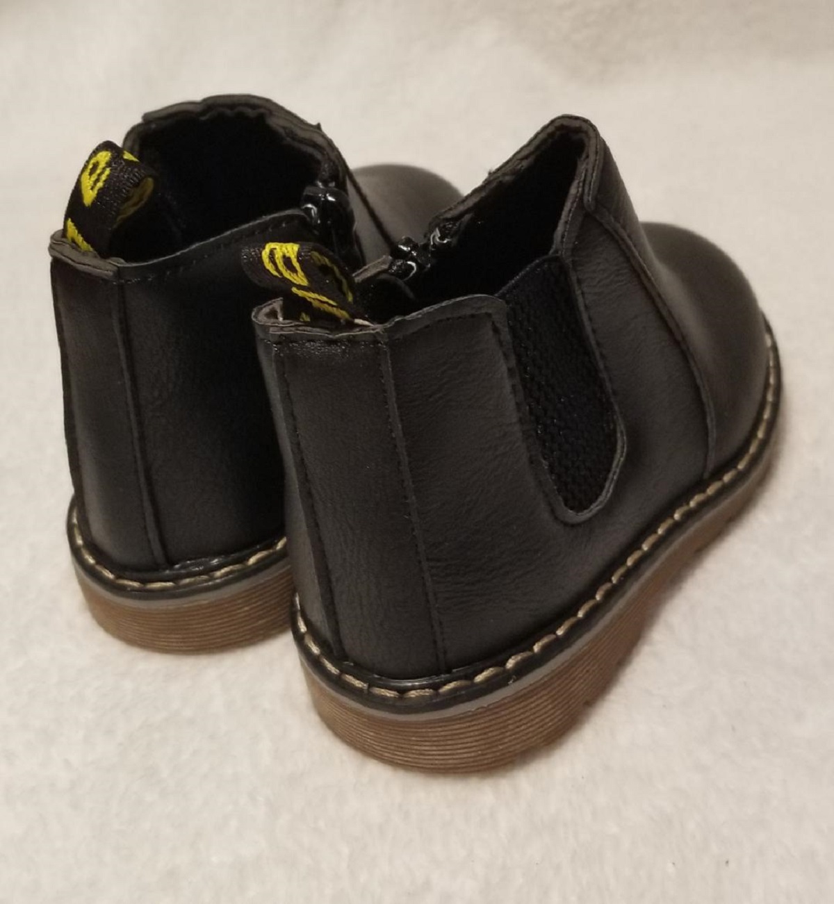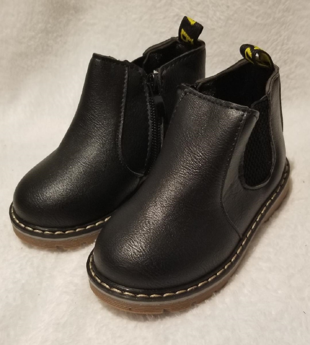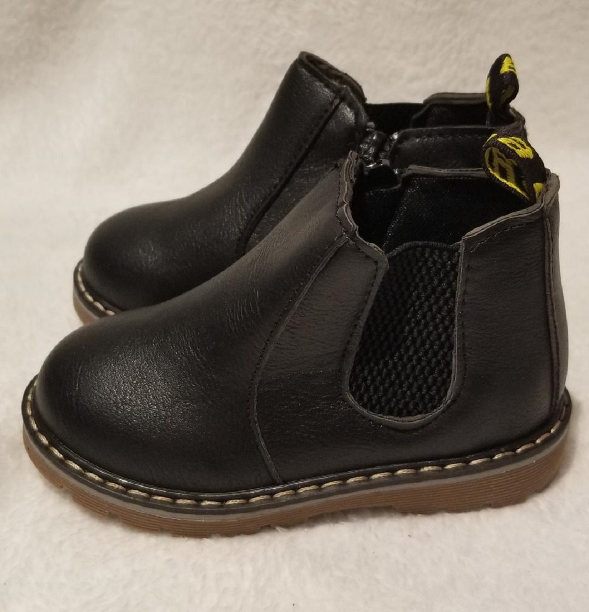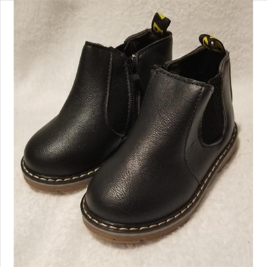 Kids PU Leather Black Side Zipper Boots Size - US5.5 (2-3T Boys/Girls)