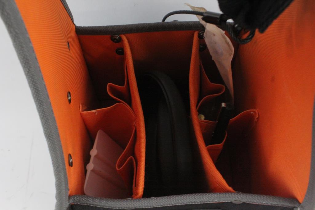 Get a great deal with this online auction for a tool bag and more presented by Property Room on behalf of a law enforcement or public agency client. - Klein Tools tool bag, orange and black, 9" x 9" x 18"