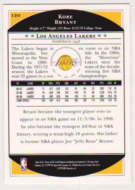 Kobe Bryant 1999-00 Upper Deck Victory #120 Card