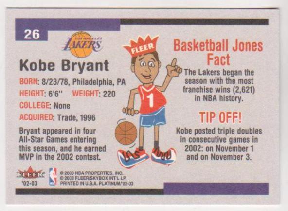 Kobe Bryant 2002-03 Fleer Platinum #26 Card