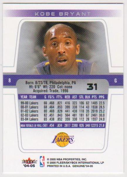 Kobe Bryant 2004-05 Fleer Genuine #31 Card