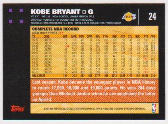 Kobe Bryant 2007-08 Topps #24 Card