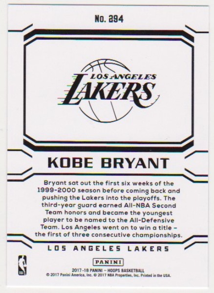 Kobe Bryant 2017-18 Hoops Career Tribute #294 Card