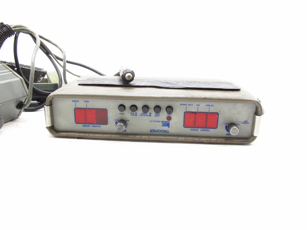 Get a great deal with this online auction for assorted items presented by Property Room on behalf of law enforcement or public agency client. Trooper Kustom Signals Traffic Radar System / Digital Display Trooper Kustom Radar Gun Cosmetic Condition: Fair, item has scratches and other markings, some parts may be broken and or have missing pieces. - Testing Results: Untested due to lack of proper testing equipment.