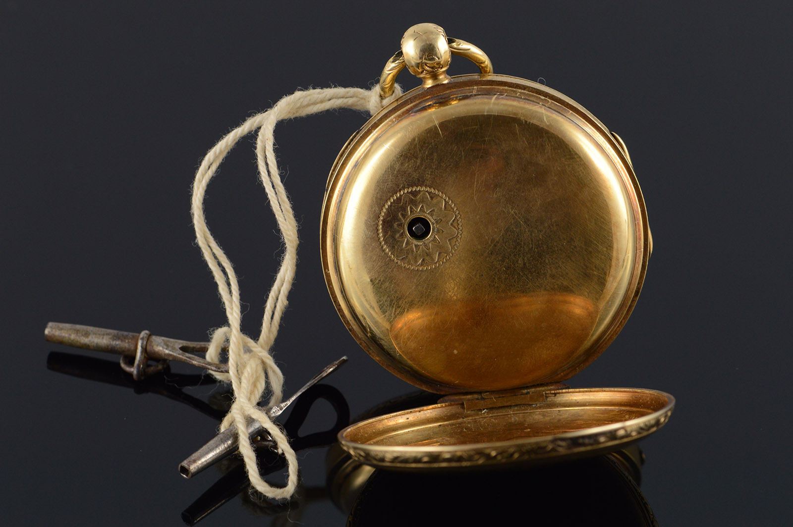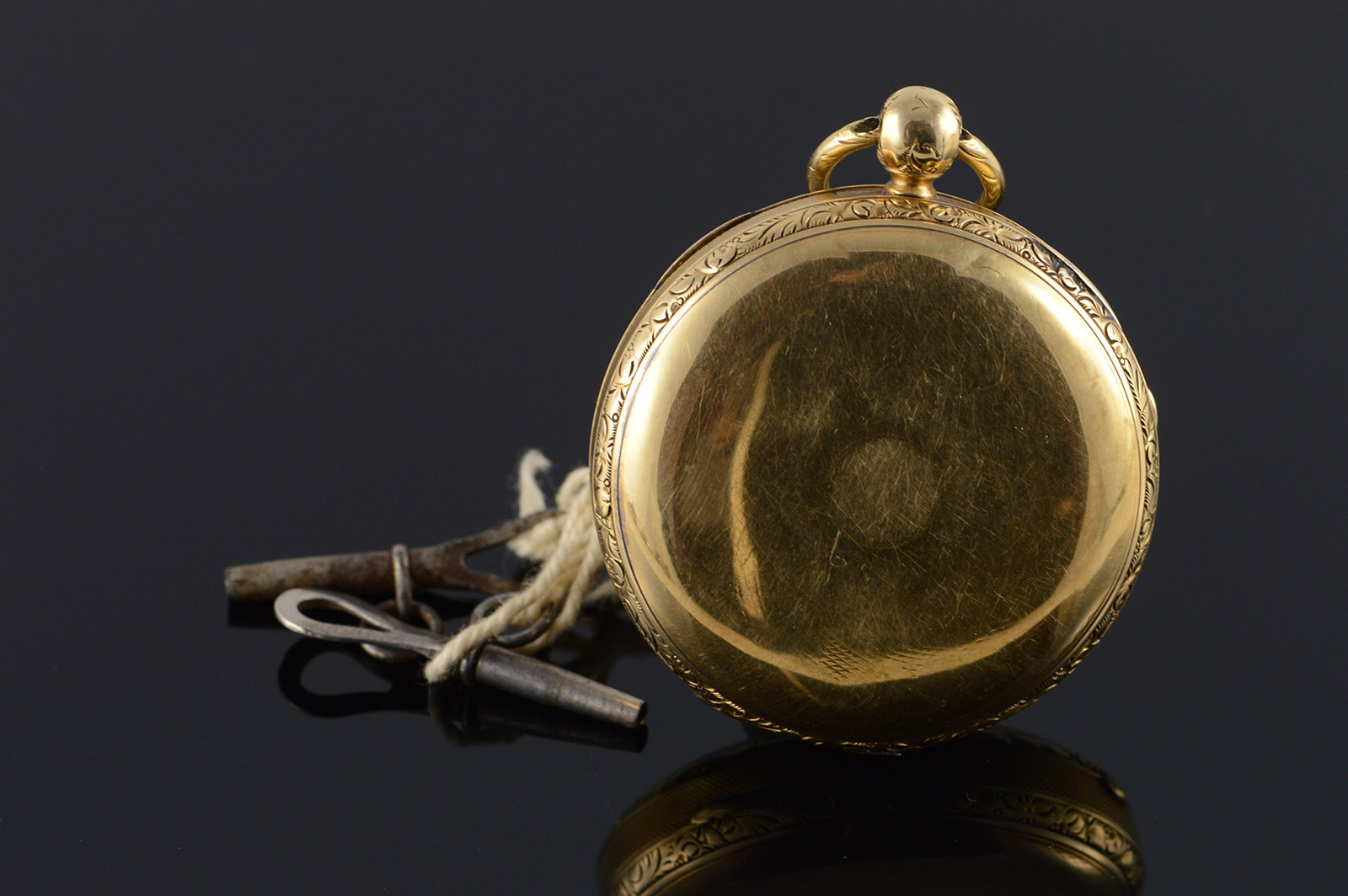 L H Samuel & Co of Liverpool 48mm Case Key Wind Bridge Scene Dial Pocket Watch