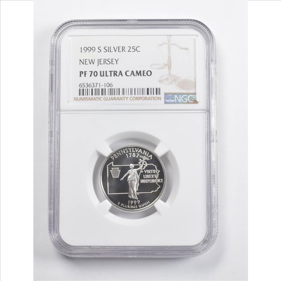 Label Error PF70 UCAM 1999-S Pennsylvania Silver State Quarter NGC
