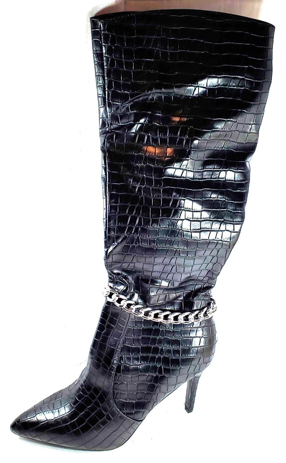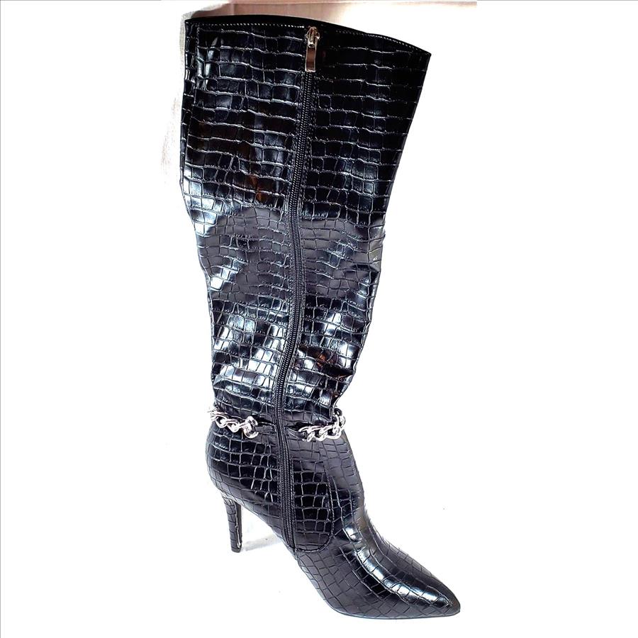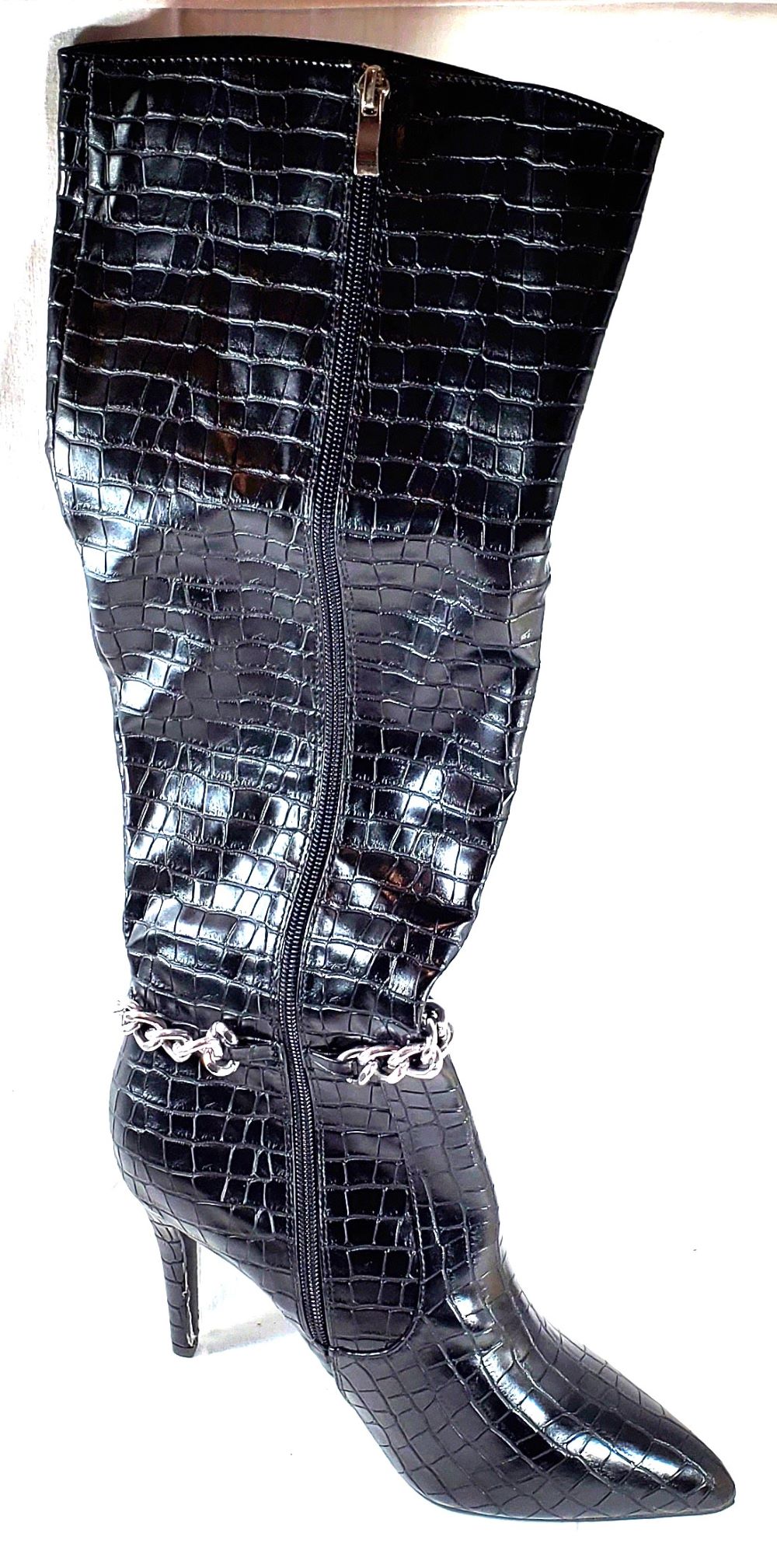 Ladies Knee High Full Zip PU Leather High Heel Boots Black Size 8