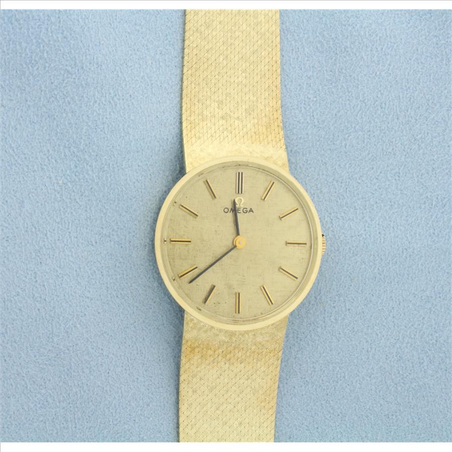Ladies Vintage Omega Watch in Solid 14k Yellow Gold Case and Band
