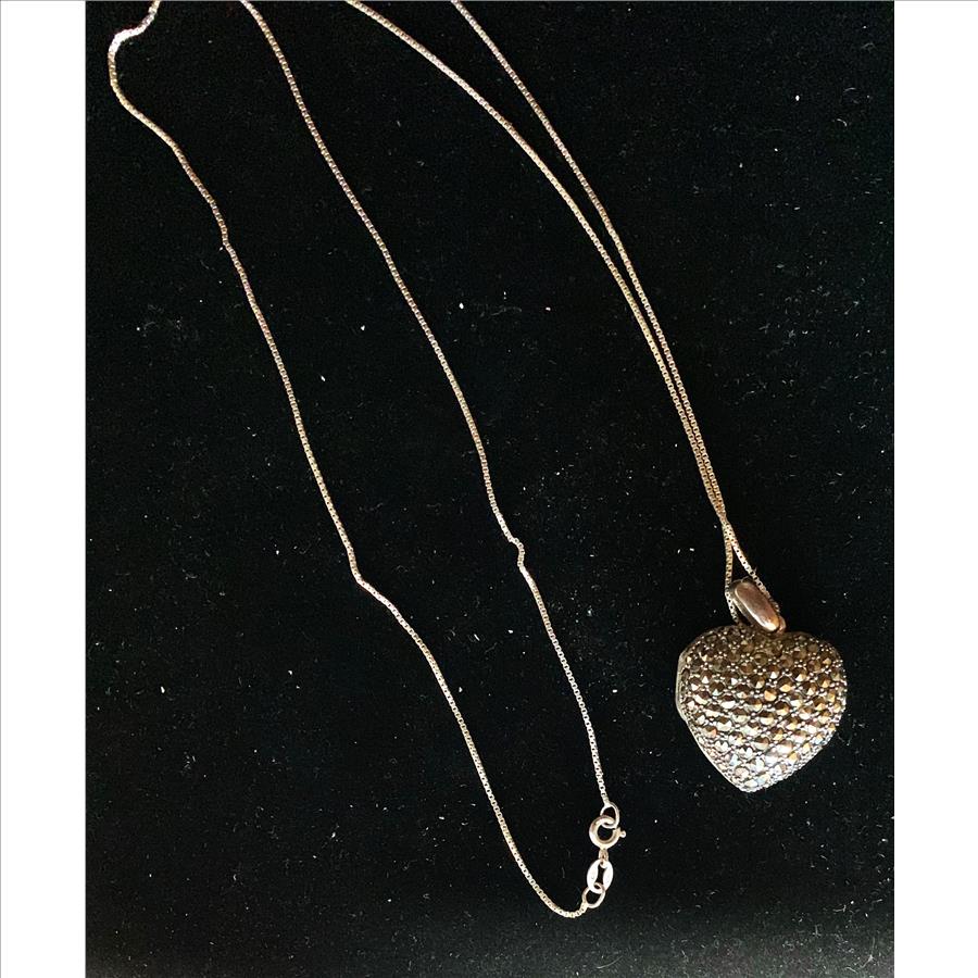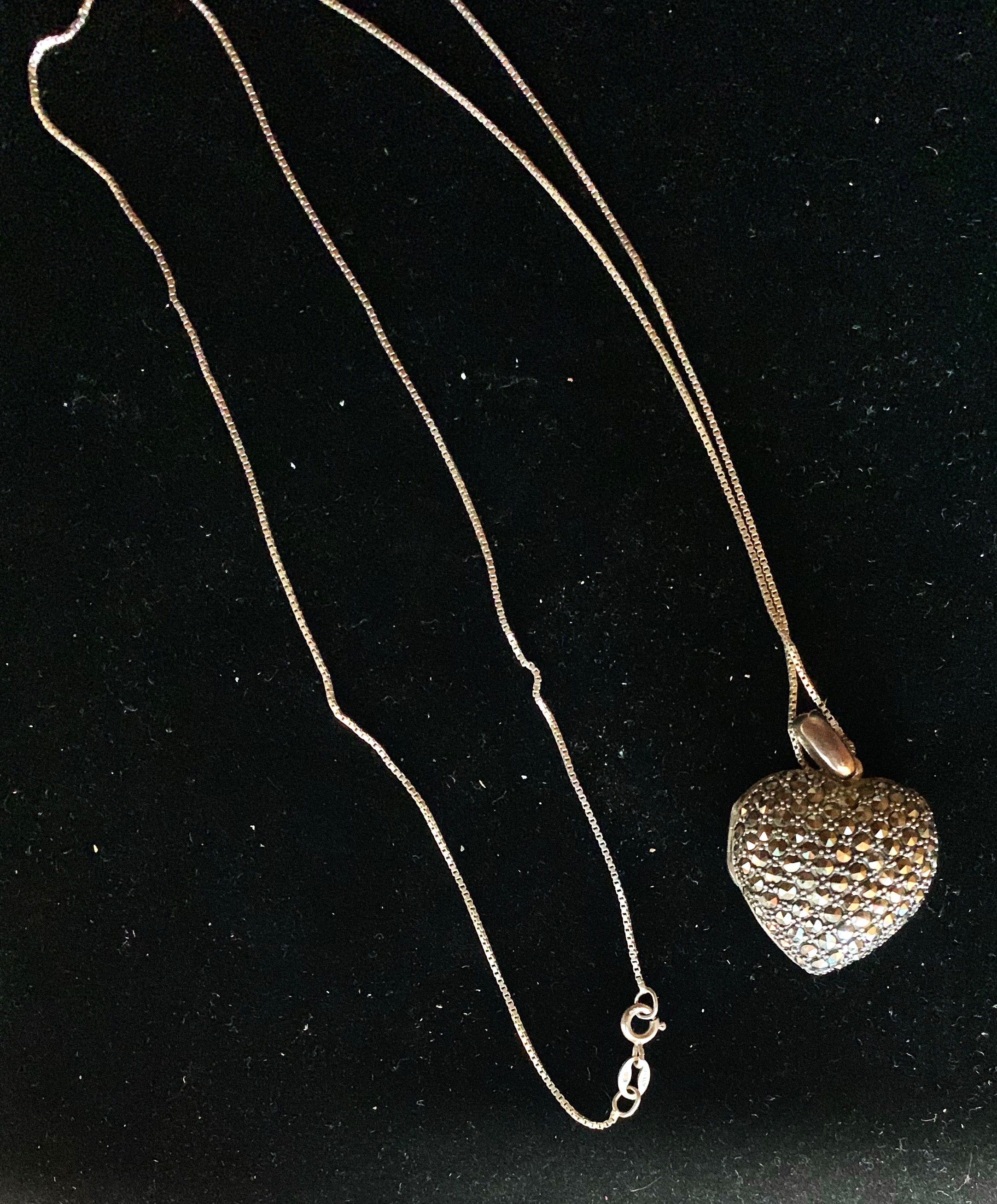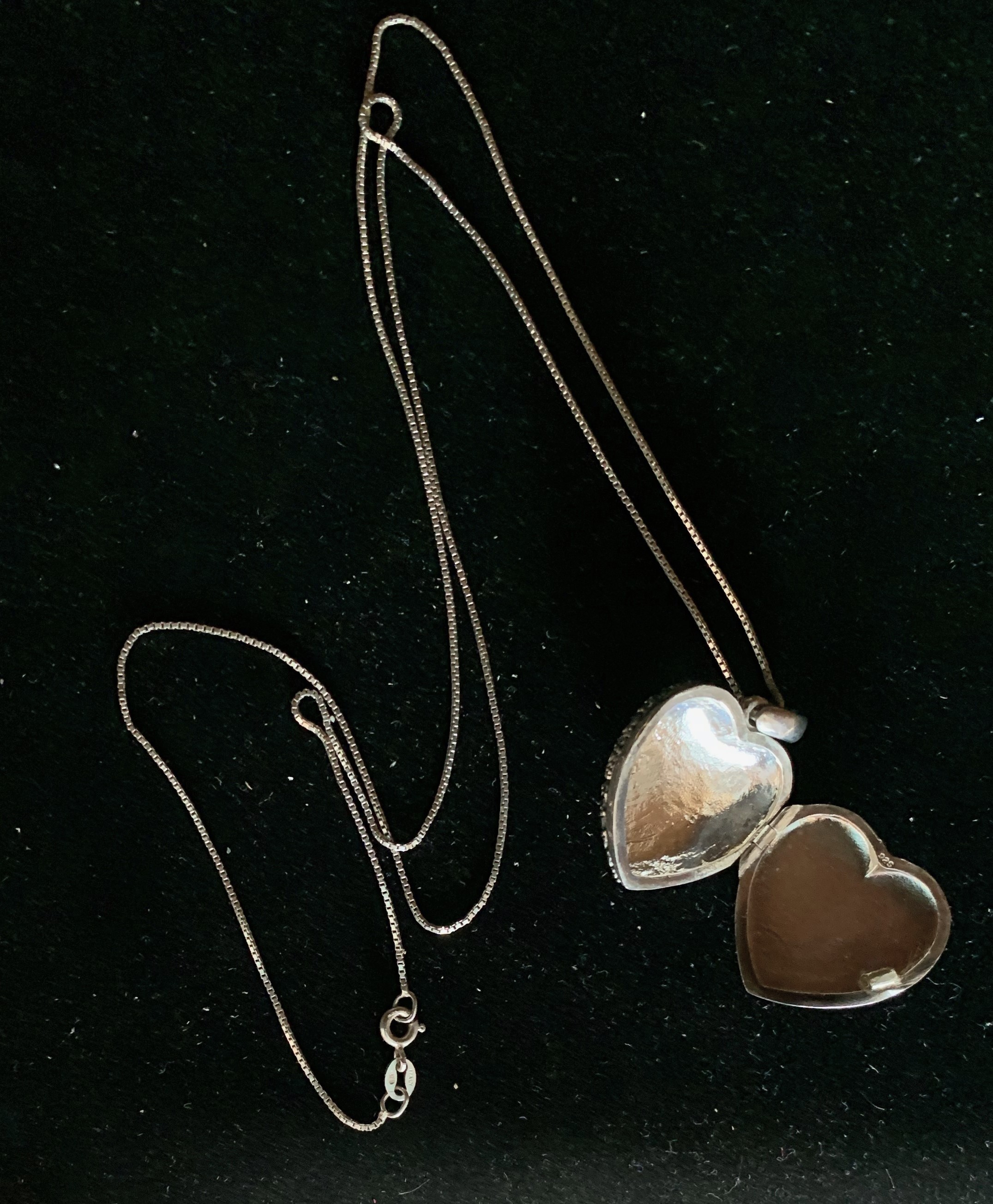 LADIES VINTAGE STERLING SILVER OPENING HEART LOCKET AND 24" NECKLACE