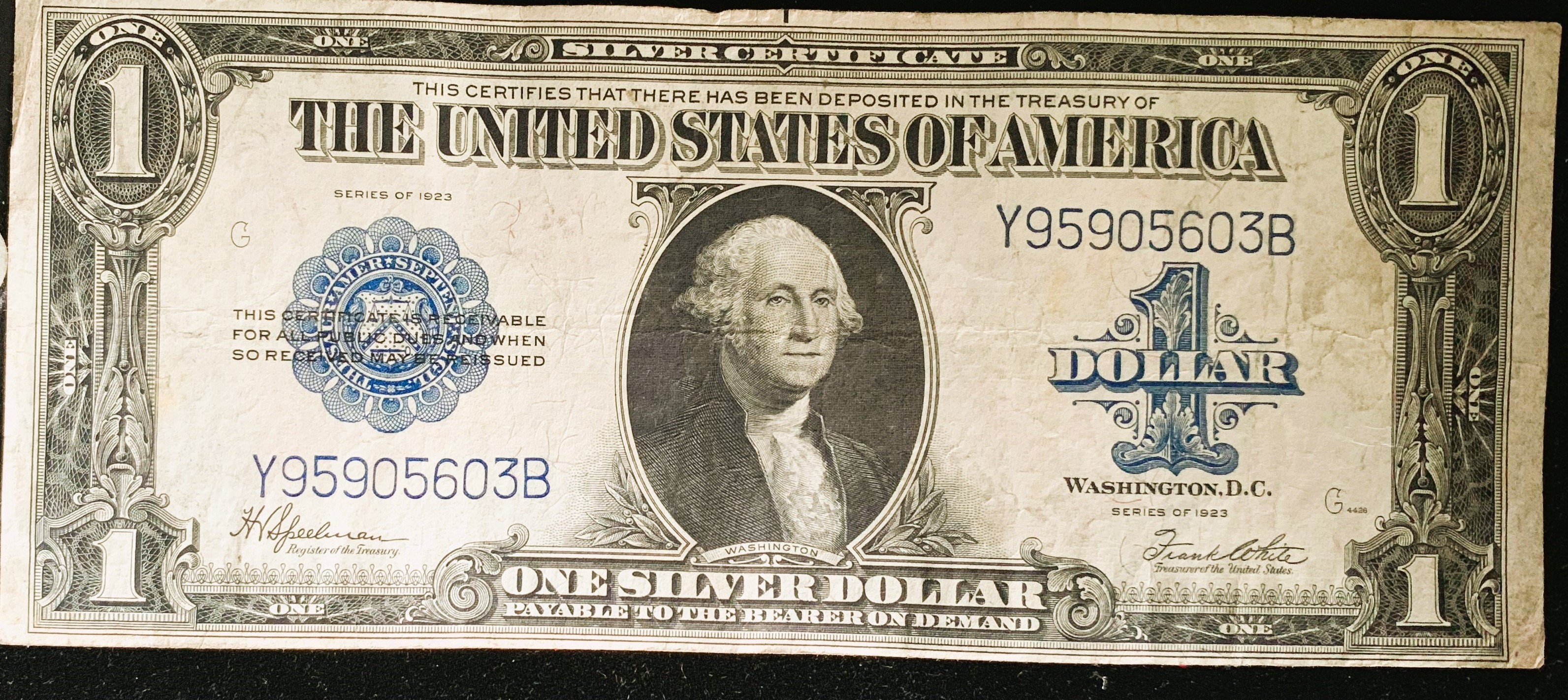LARGE $1 DOLLAR NOTE SILVER CERTIFICATE SERIES 1923, BLUE LABEL, HIGHLY SOUGHT AFTER, EXCELLENT CONDITION, IN SLEEVE