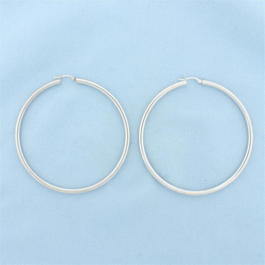 In 18k white gold. 2 1/2 inch diameter. 3mm tubes. 6.2g.