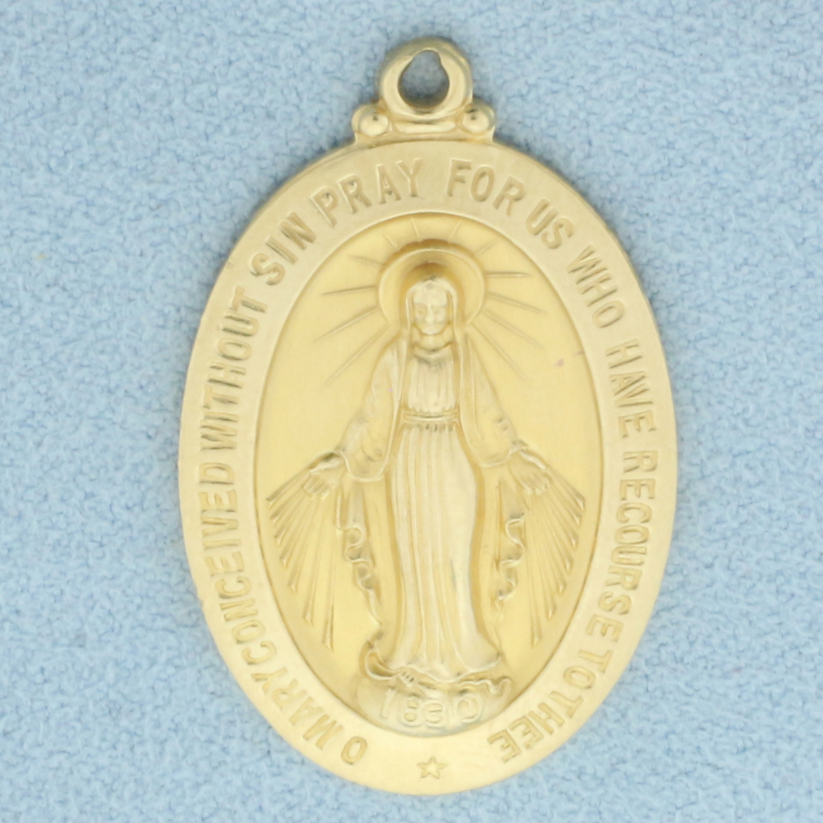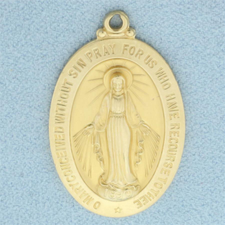 Large Miraculous Medal Virgin Mary Pendant in 14k Yellow Gold