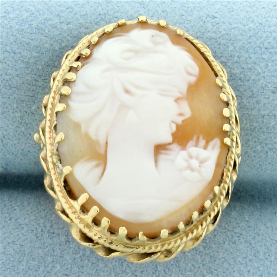 Large Vintage Shell Cameo Ring in 14k Yellow Gold