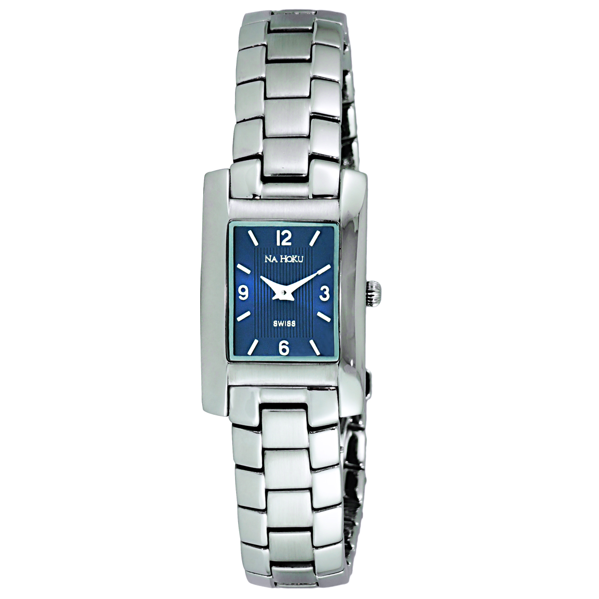 Le Chateau (Na Hoku) Swiss Women's All Stainless Steel Silver Tone & Blue Sunray Dial Watch (MSRP $:495.00)
