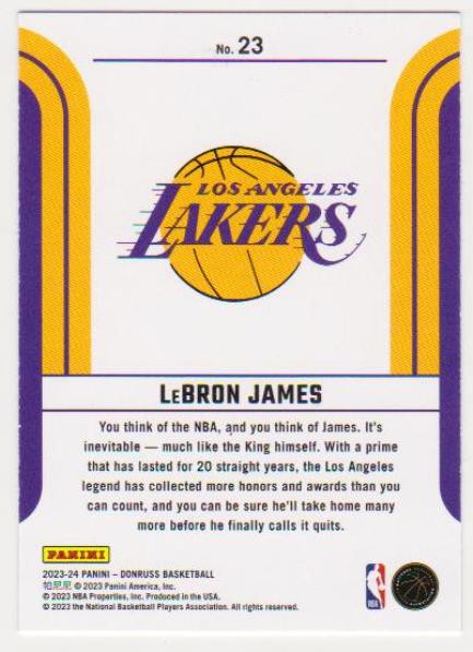 This is a Lebron James 2023-24 Donruss #23 card.  It is a nice approximately Near Mint condition card of this NBA star.