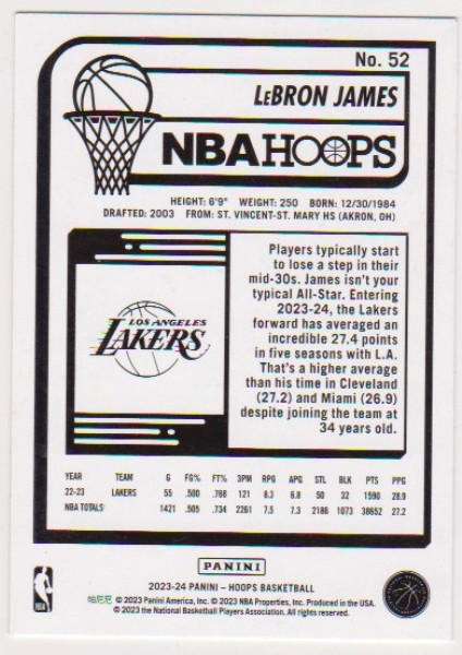 Lebron James 2023-24 Hoops #52 Card