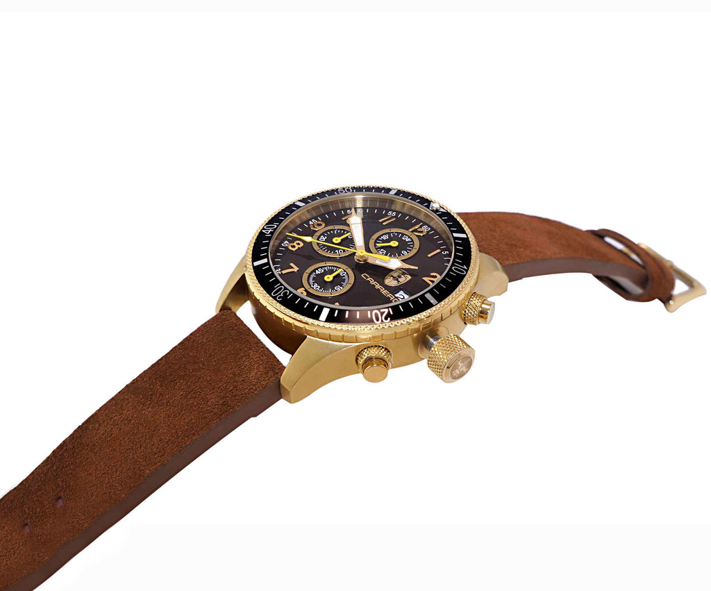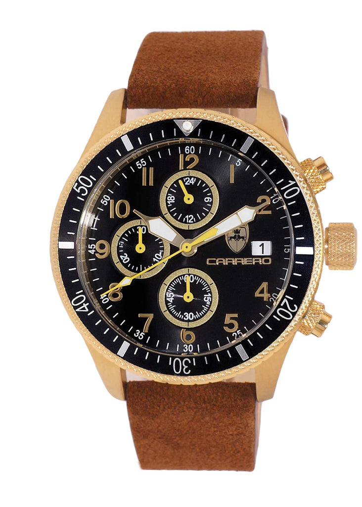 LeChateau - Chronograph Epson VR33 Muscle Movt ,Black dial and bezel, Gold-tone Case, Brown Band , Retail at (MSRP:$1,788.00)