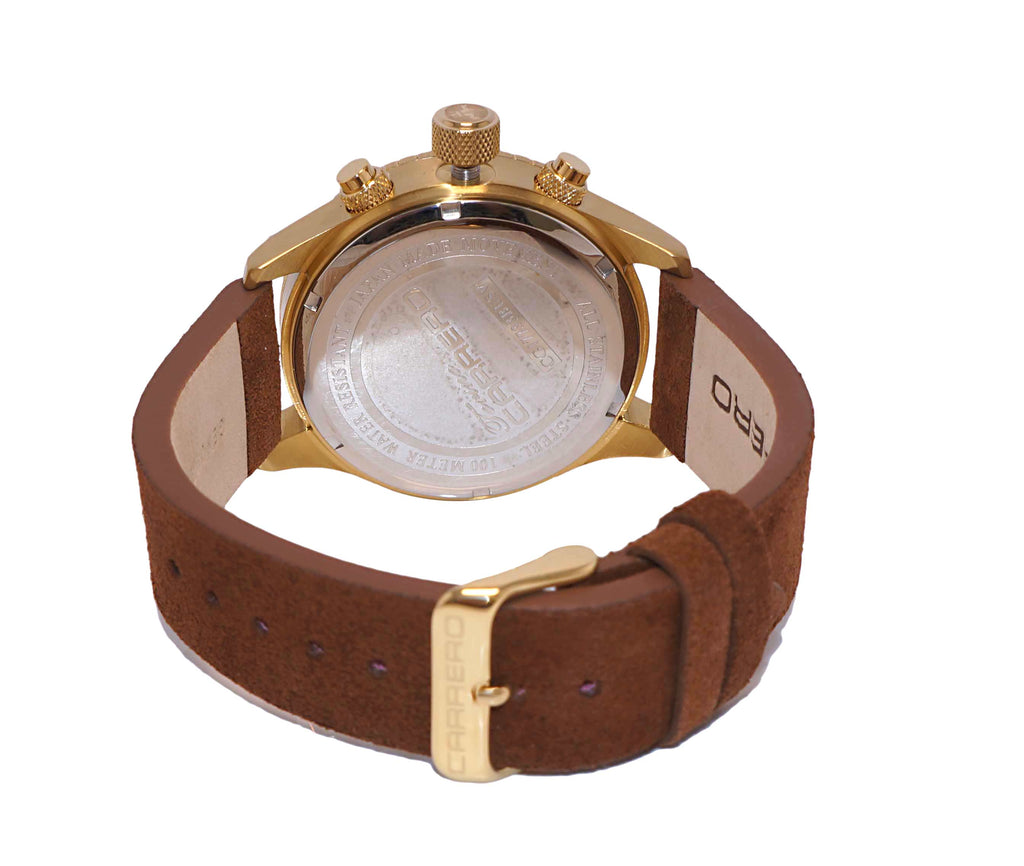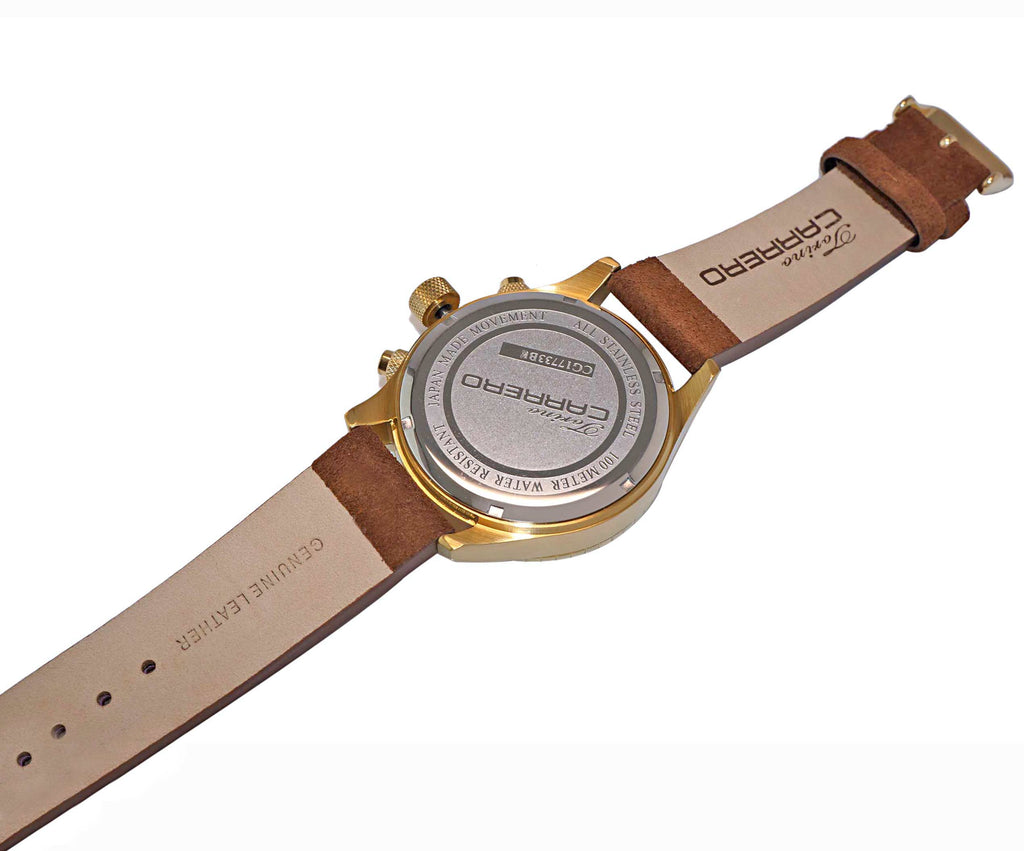 LeChateau - Chronograph Epson VR33 Muscle Movt ,Black dial and bezel, Gold-tone Case, Brown Band , Retail at (MSRP:$1,788.00)
