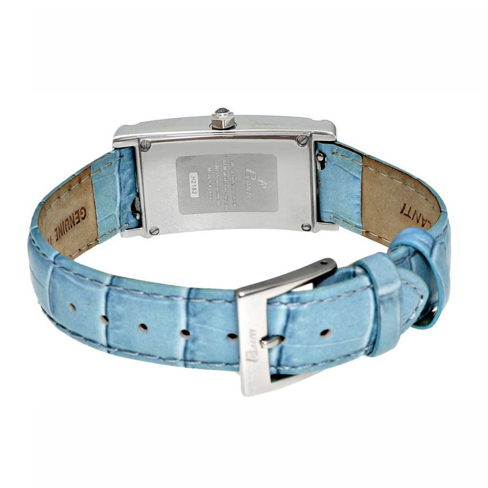• Padded Aqua Blue Leather Strap with Regular Stainless Steel Buckle