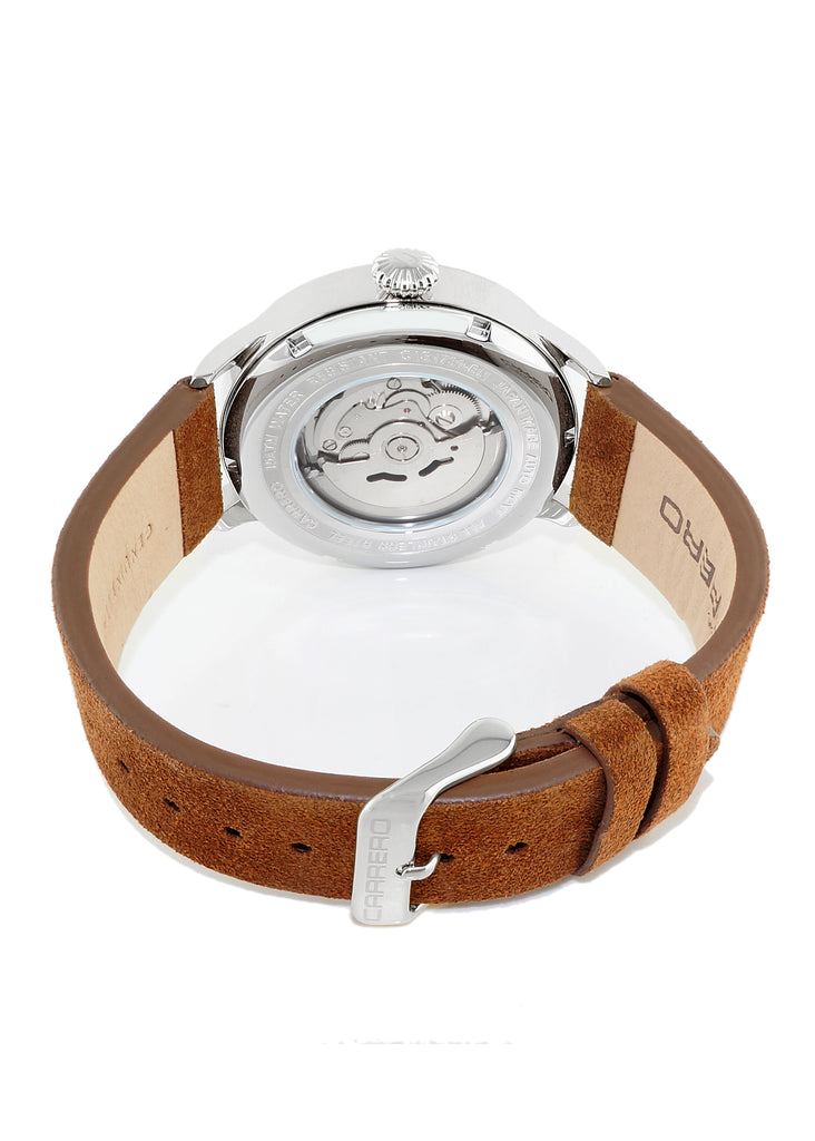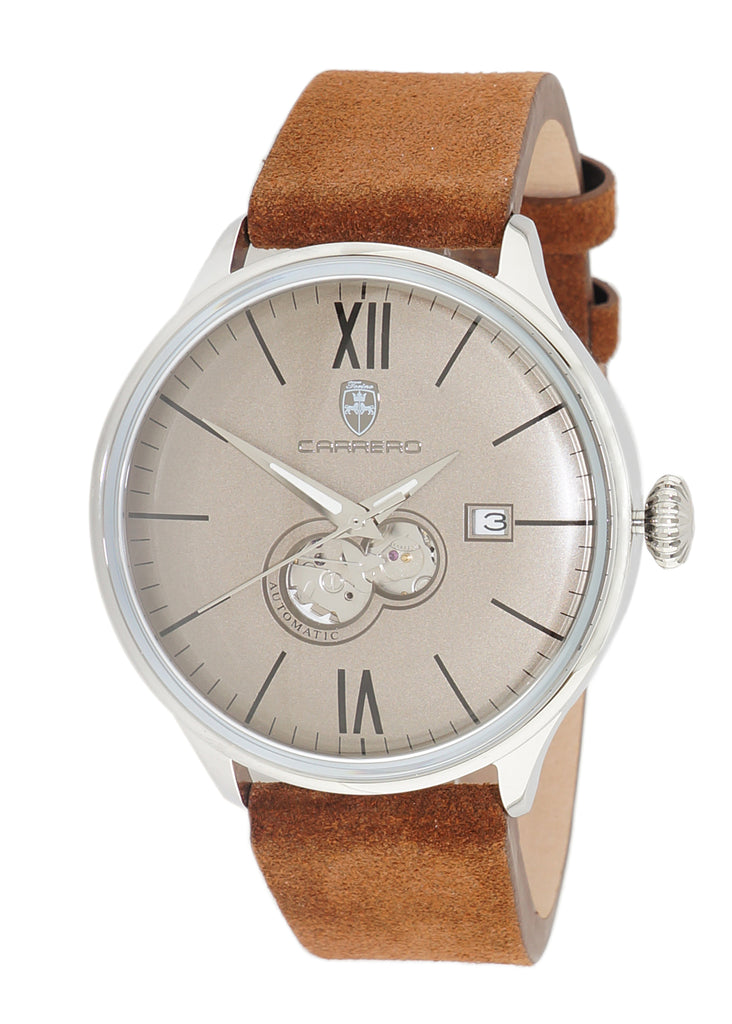 Lechateau, Men's 24-JEWELS AUTOMATIC, WITH HEART BEAT CURVE ASH GREY DIAL, BROWN GENUINE LEATHER BAND, (MSRP: $2,268.00)