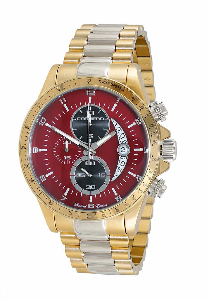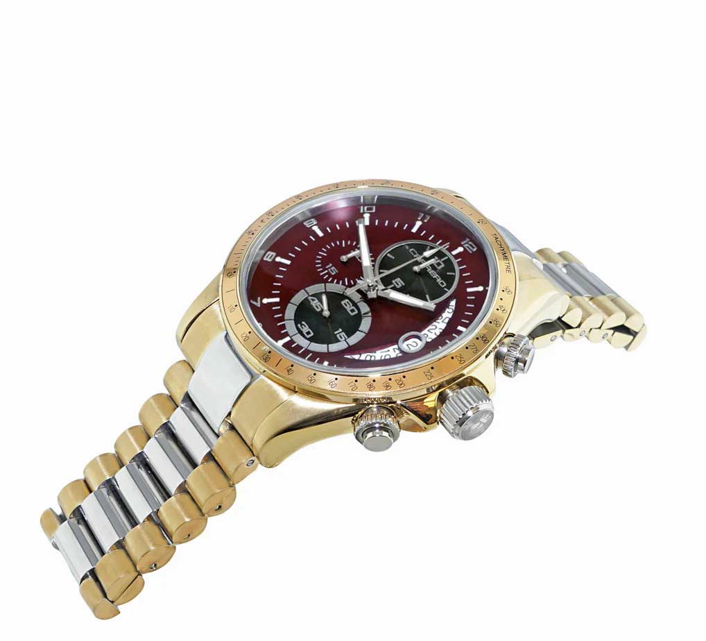Lechateau Mens, Swiss-Ronda Chronograph Mov't, 2- Told Gold, Maroon -Black - Date Dial, C2T101YL_BRD - MSRP: $2,468.00
