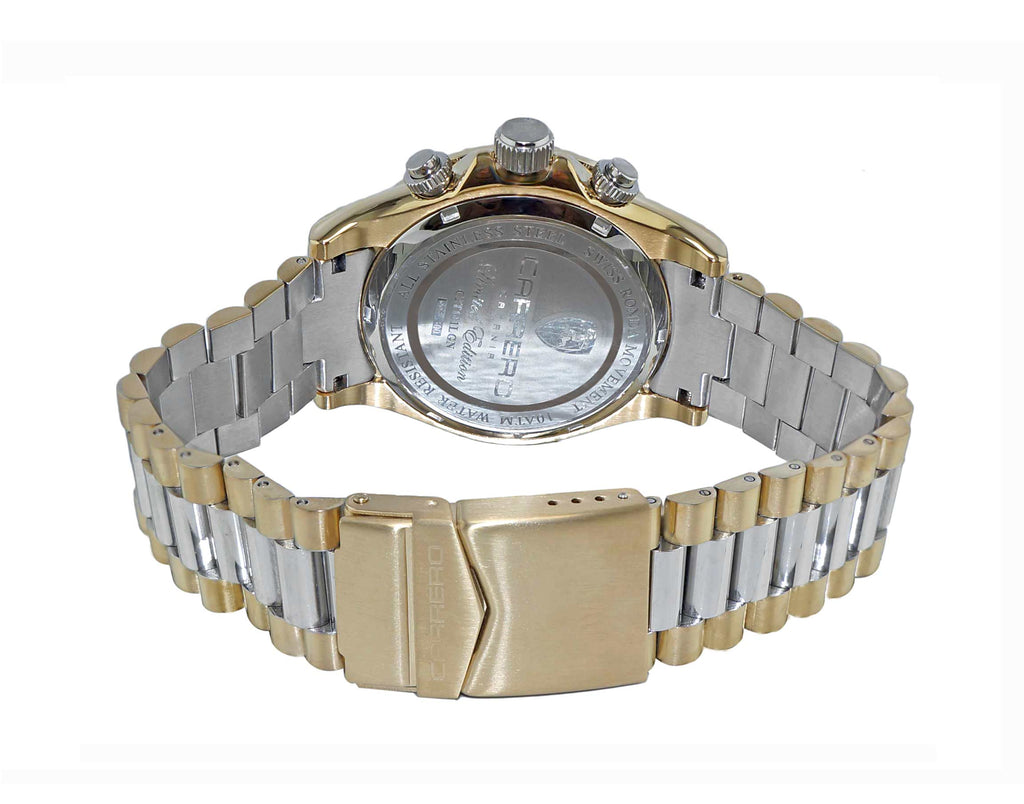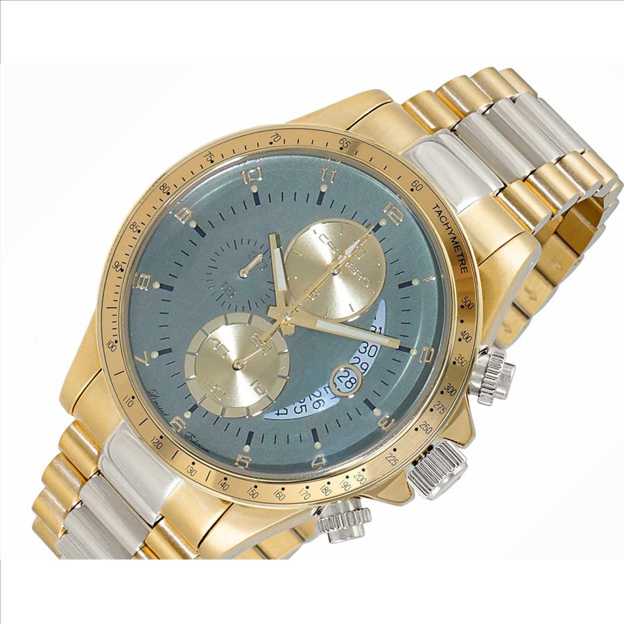 Lechateau Mens, Swiss-Ronda Chronograph Mov't, 2- Told Gold, Teal Green - Date Dial, C2T101LGN - MSRP: $2,468.00