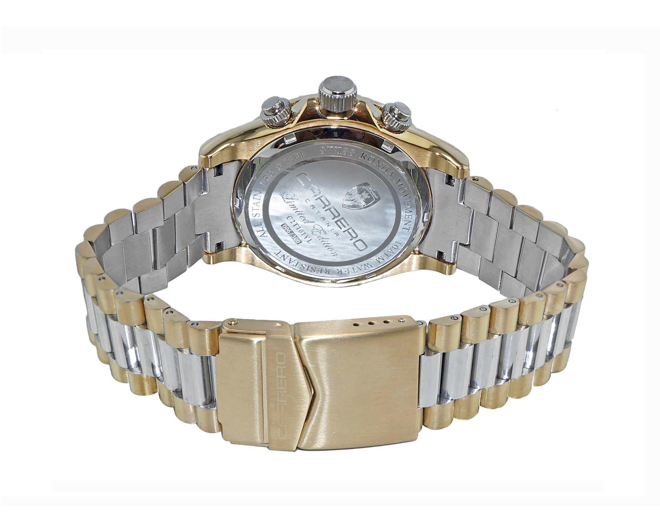 Lechateau Mens, Swiss-Ronda Chronograph Mov't, 2- Told Gold, Yellow - Date Dial, C2T101LYL - MSRP: $2,468.00