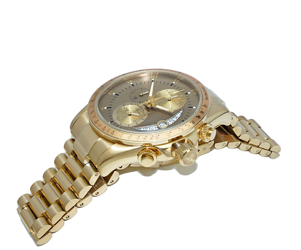 Lechateau Mens, Swiss-Ronda Chronograph Mov't, Light Brown -Date Dial,Gold tone, MSRP: $2,468.00
