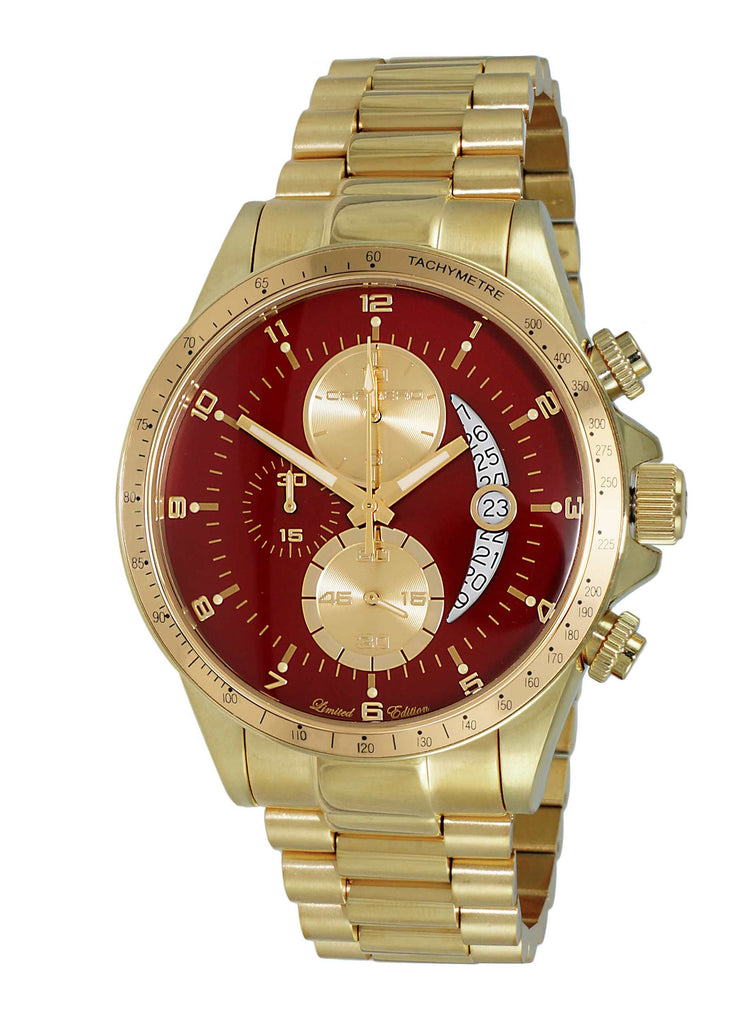 Lechateau Mens, Swiss-Ronda Chronograph Mov't, Maroon - Date Dial,Gold tone, MSRP: $2,468.00