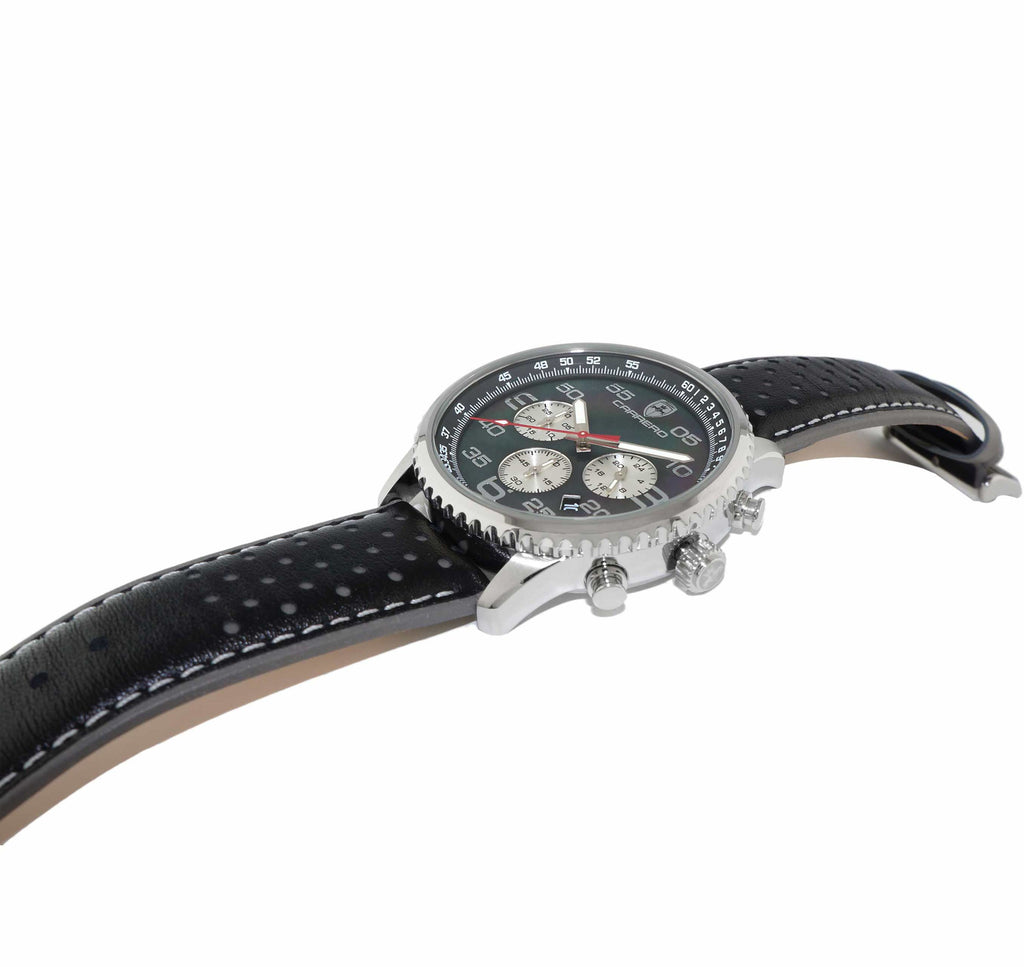 Lechateau Men's VR32 Movement Chronograph Mov't, Black MOP Dial, Black Genuine Leather Band, (MSRP: $2,148.00)
