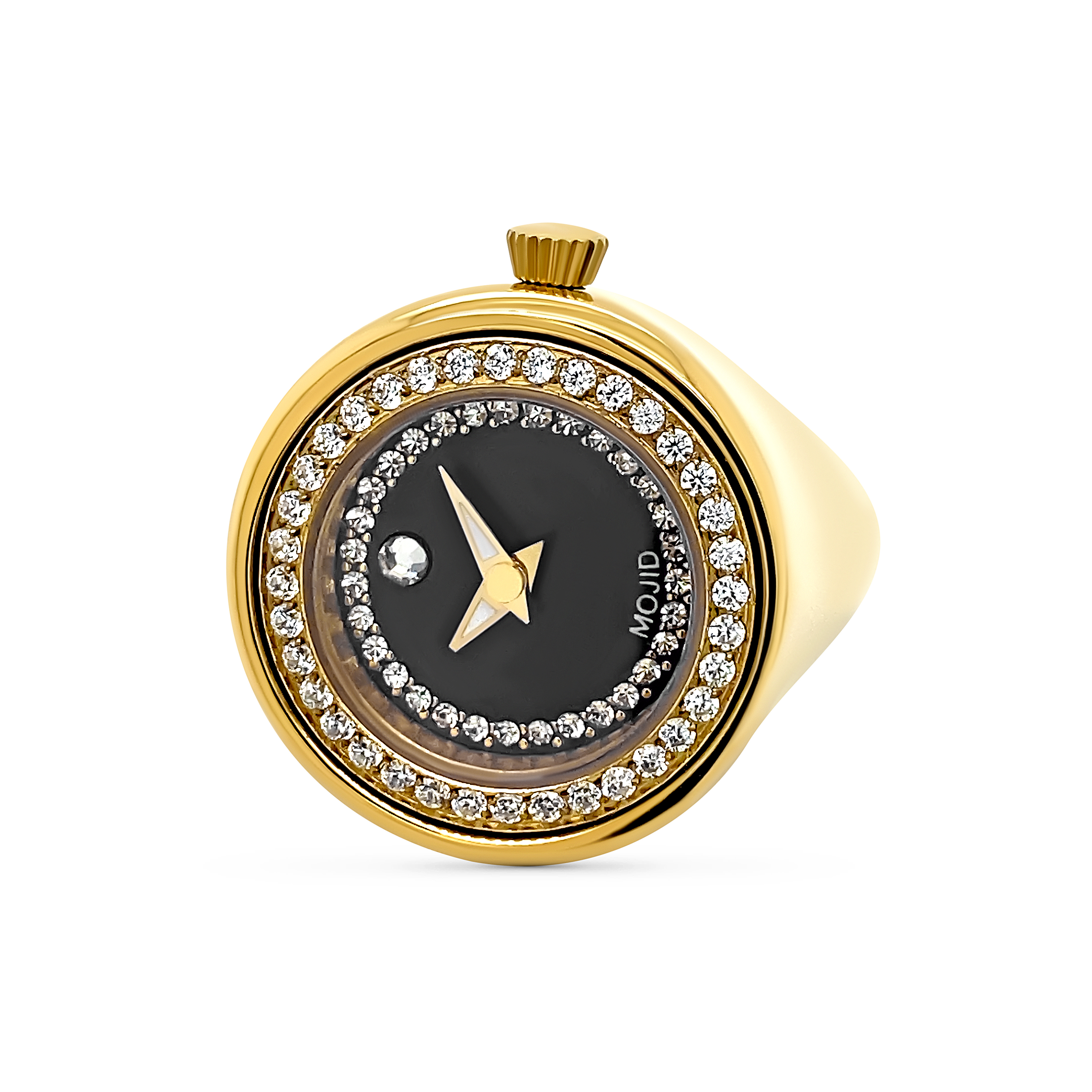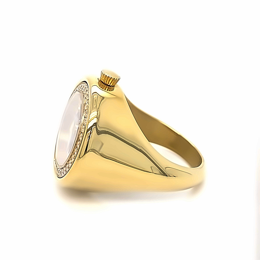 Lechateau UNI-SEX MOJID Ring Watch, Goldtone, Black Dial, Sixe-9, Two-Hand Analog Display, MJ9-0001MGBK