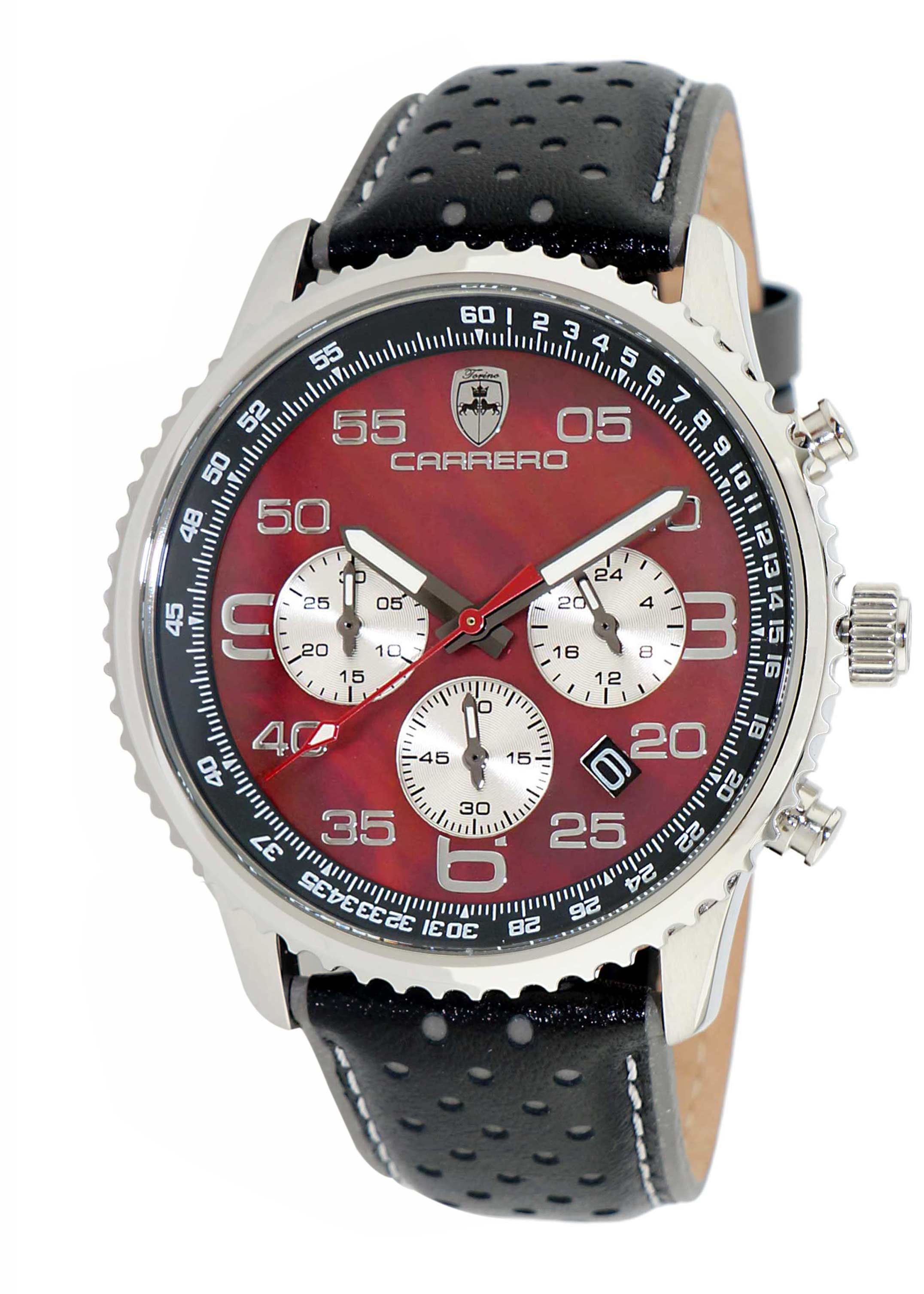 Lechateau - VR32 Movement Chronograph Mov't, Black-Brown MOP Dial, Black Genuine Leather Band, (MSRP: $2,148.00)