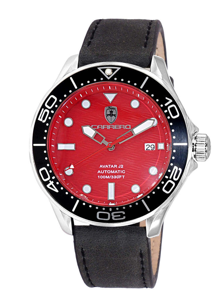 Lechateau Watches - Automatic -24 Jewels NH35, Textured Red Date dial, Black bezel, Black Strap - Retail at (MSRP: 2,268.00)