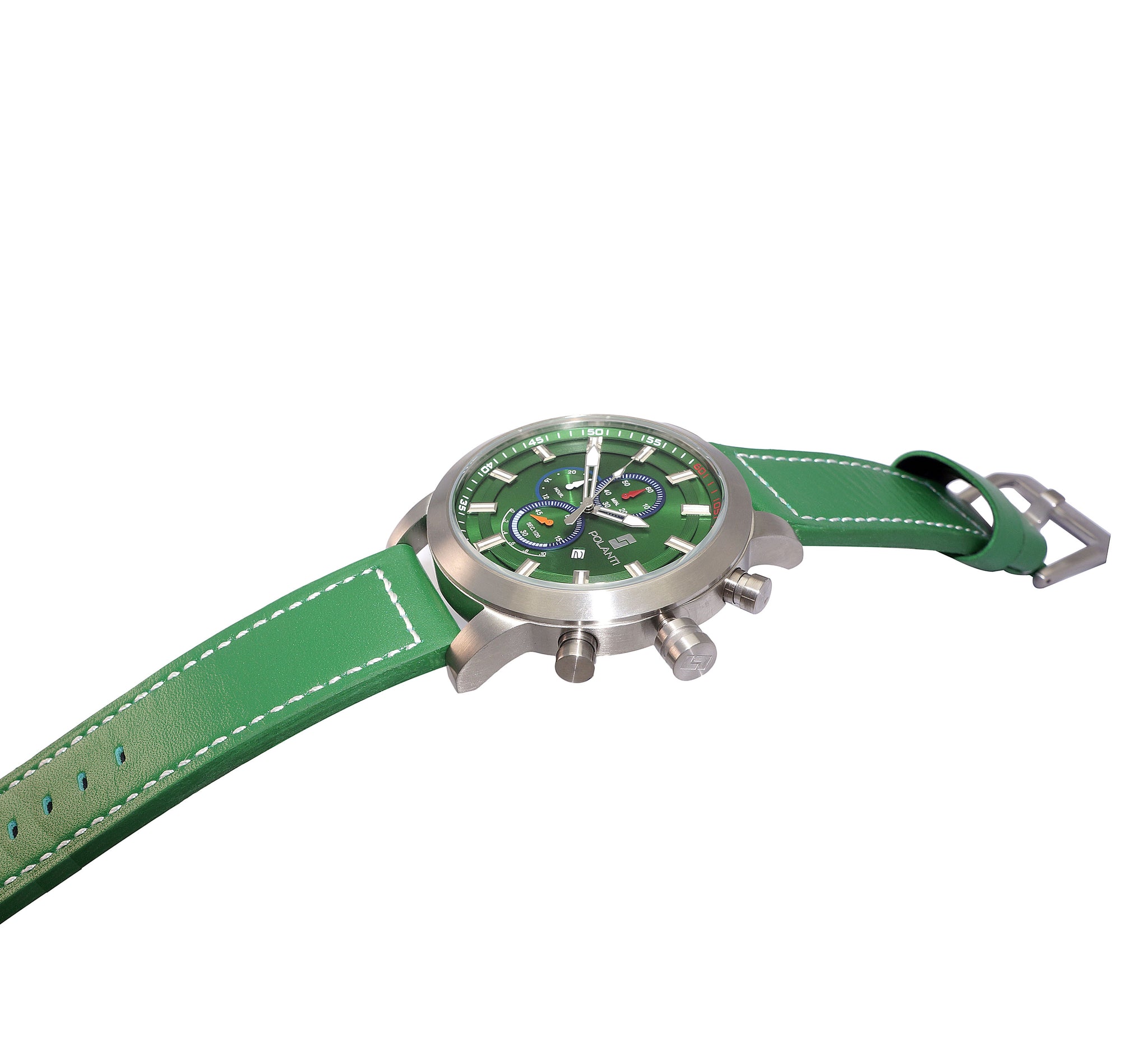 BAND MATERIAL GENUINE LEATHER BAND, GREEN WITH WHITE STITCHES