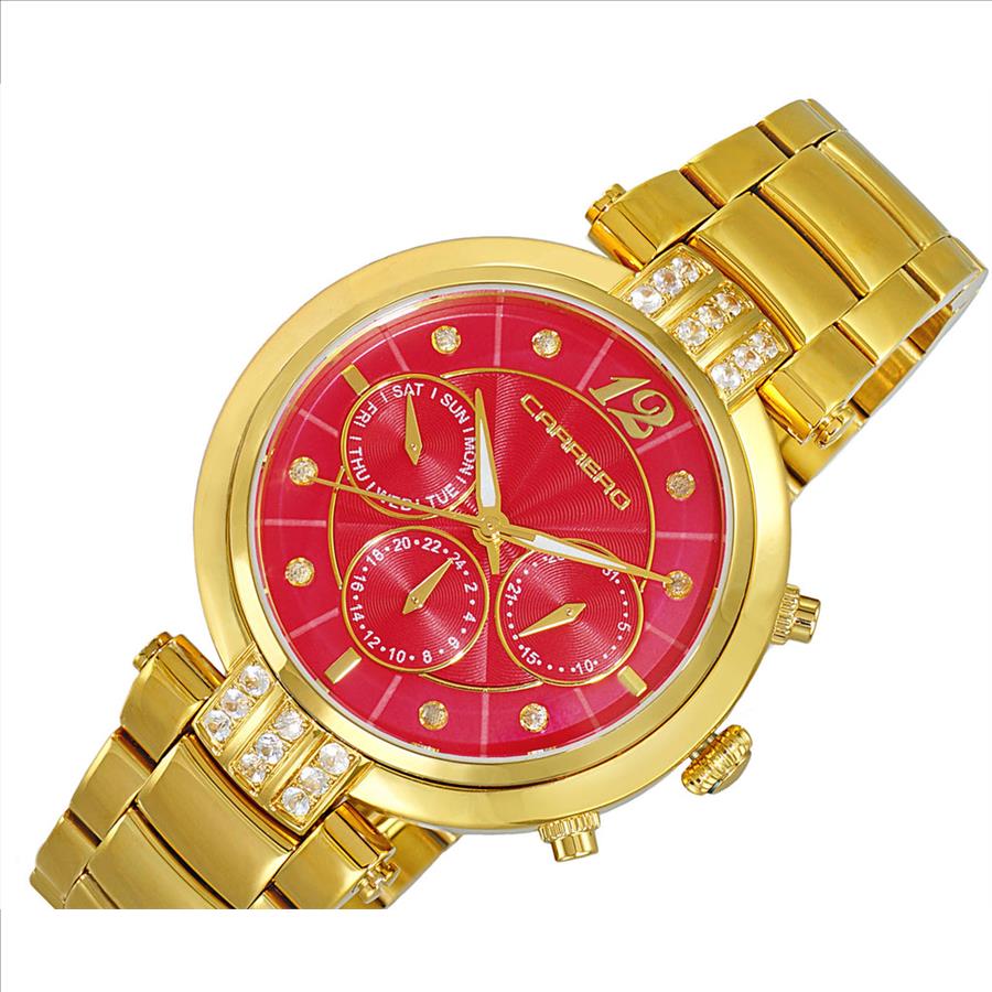 Dial:   RED MOP Dial (Mother of Pearl), Accented with Genuine Sapphire stones
