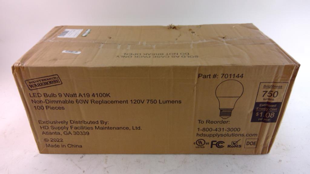 - LED bulb 9 watt A19 4100K Non-Dimmable 60W Replacement 120v 750 lumens