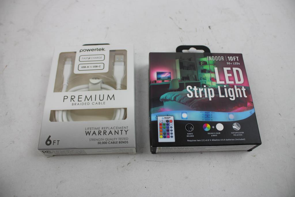 LED Strip Light, PowerTek Charger Cable, Dell Keyboard, Corsair PC Mouse, 4 Pieces