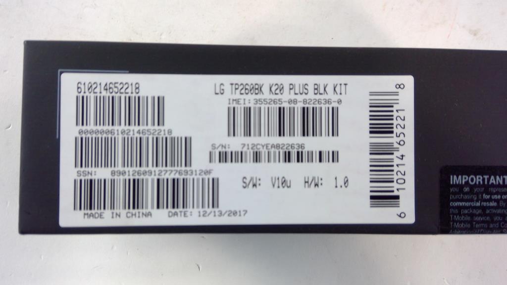 Get a great deal with this online auction presented by PropertyRoom.com on behalf of a law enforcement or public agency client. Model: K20 Plus IMEI/MEID/ESN/HEX: 355265088226360 Unable to test SIM card functionality Activation Lock: Unknown Carrier Lock: Unknown Google Lock: Unknown Physical Condition: New in Sealed box Testing Results: Item has not been tested Includes Case and screen protector