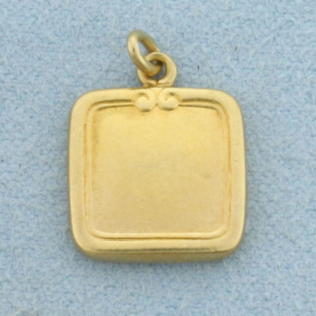 In 18k Yellow Gold. 3/4 inch long including bale. 1/2 inch wide. 4.9g.