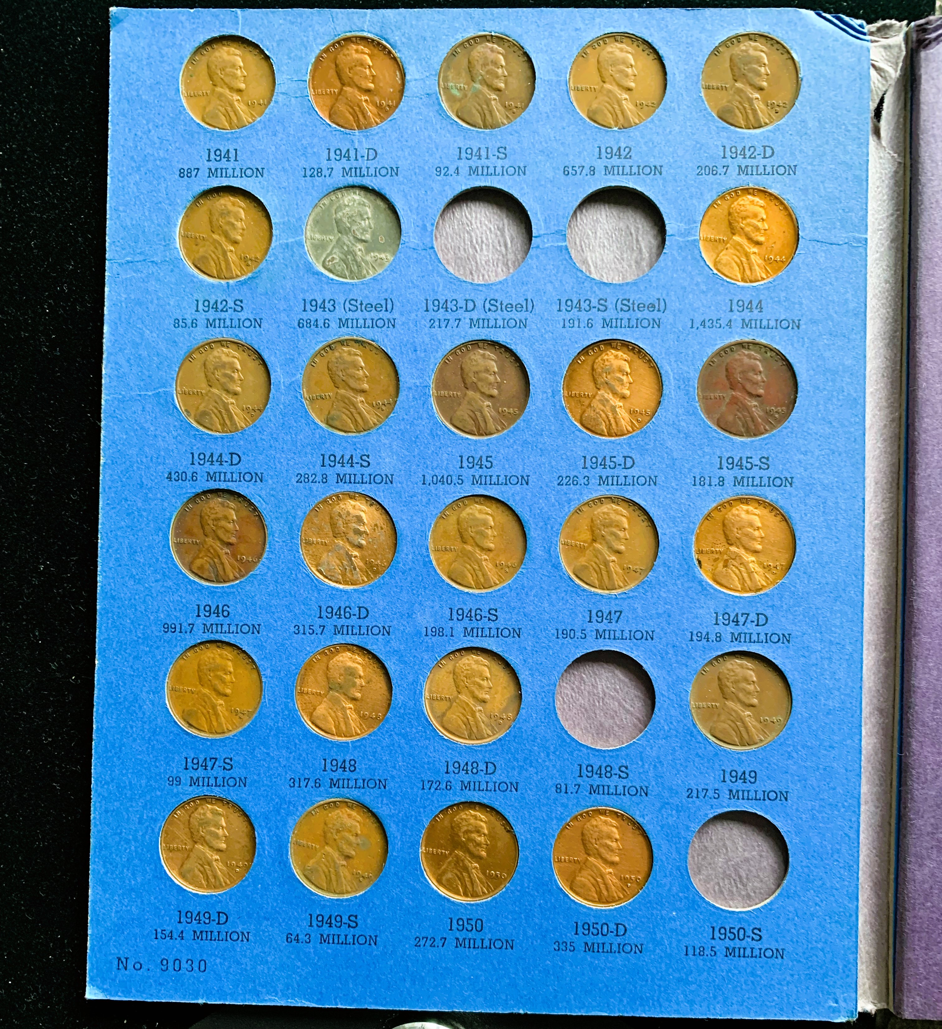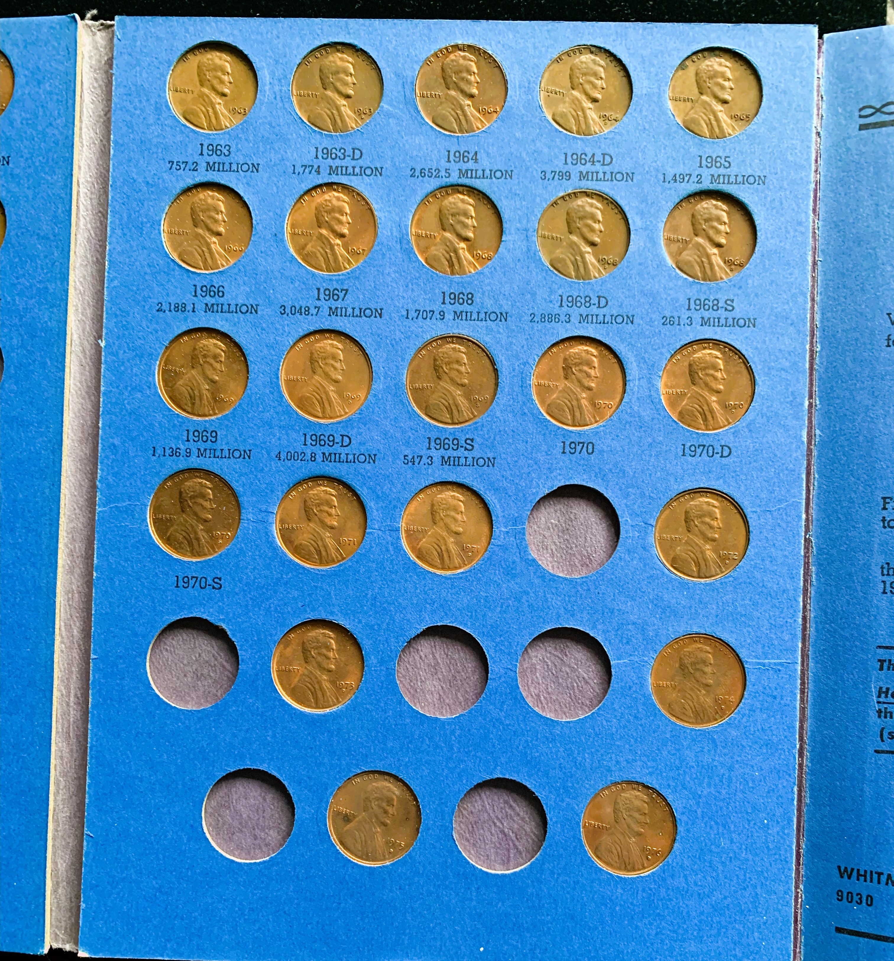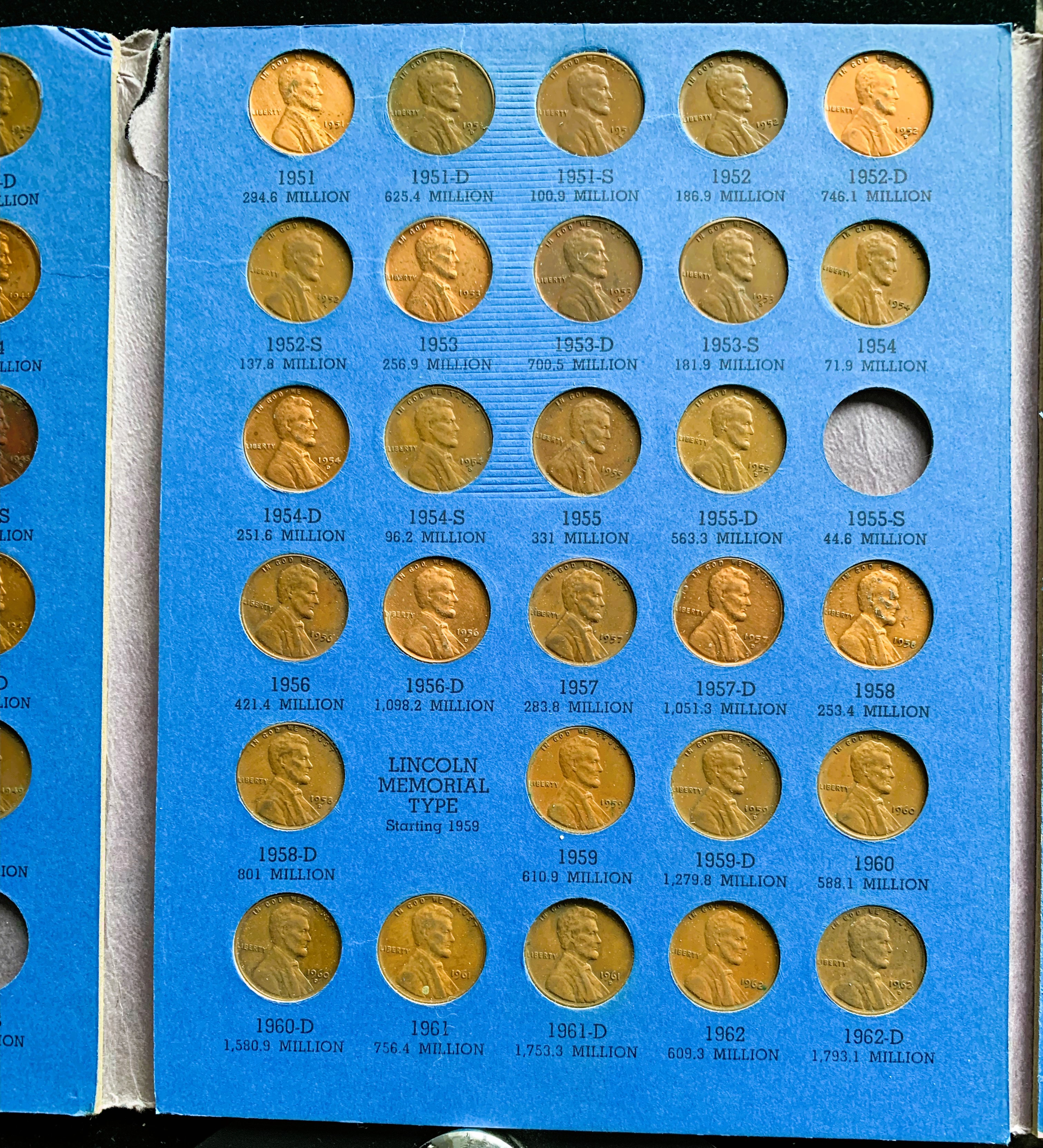 LINCOLN CENT COIN COLLECTION WHITMAN BOOK, ALMOST COMPLETED