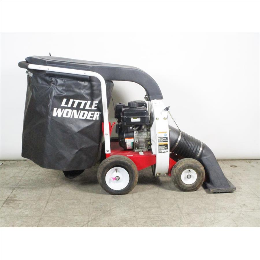 Get a great deal with this online auction presented by PropertyRoom.com on behalf of a law enforcement or public agency client. Brand:Little Wonder Model: Pro Vac2 Color: Red and White and Black gas powered, pull cord start,, Vacuum nozzle 29" W X 8" L, W/ BAG, Briggs & Stratton engine, 6.5hp, Holds just under 75 gallons or 8 bushels. - Measurements: 38" T X 29" W X 74" L.