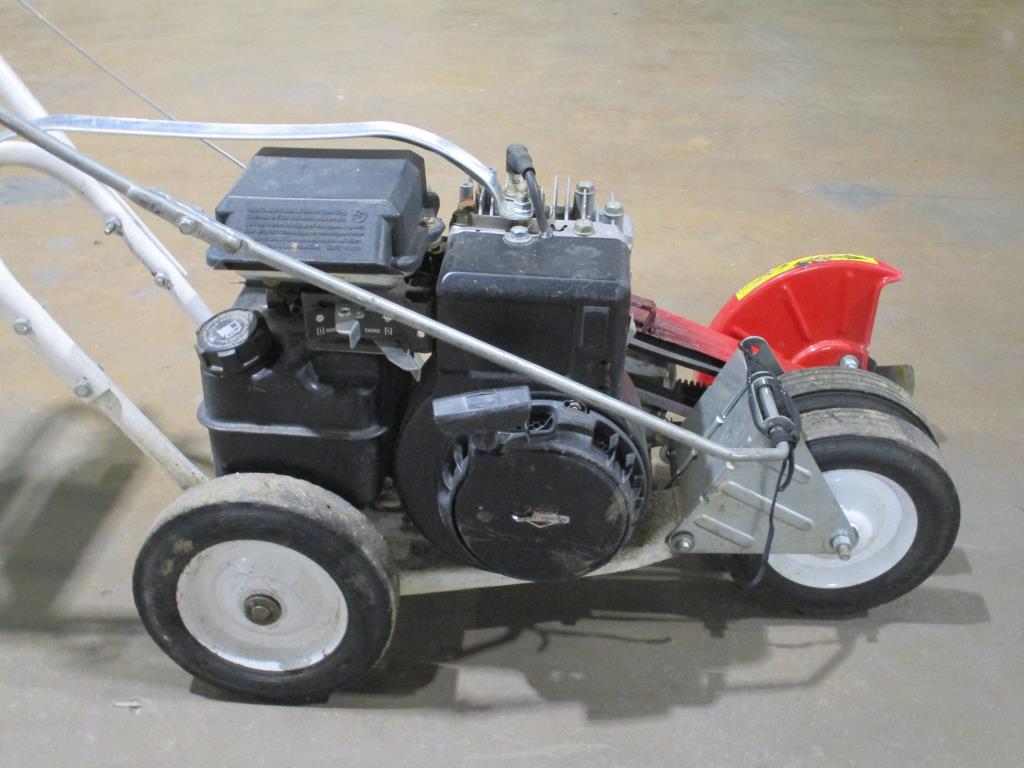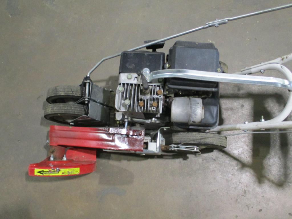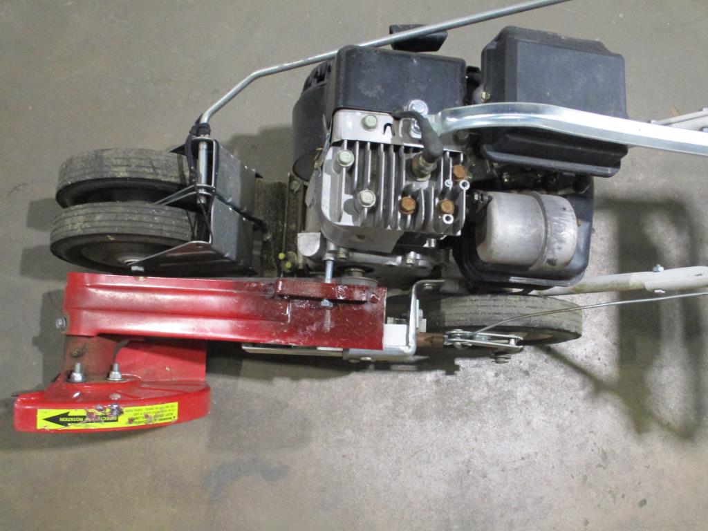 - Accessories: gas powered, pull cord start, lever to lower and enguage blade, blade cover, speed lever slow to fast, self propelled lever, handle w/ dual wheels for easy mobility, Briggs & Stratton engine.