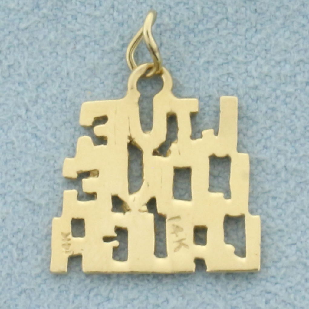 In 14k Yellow Gold. 3/4 inch long including jump ring. 1/2 inch wide. 1.0g.