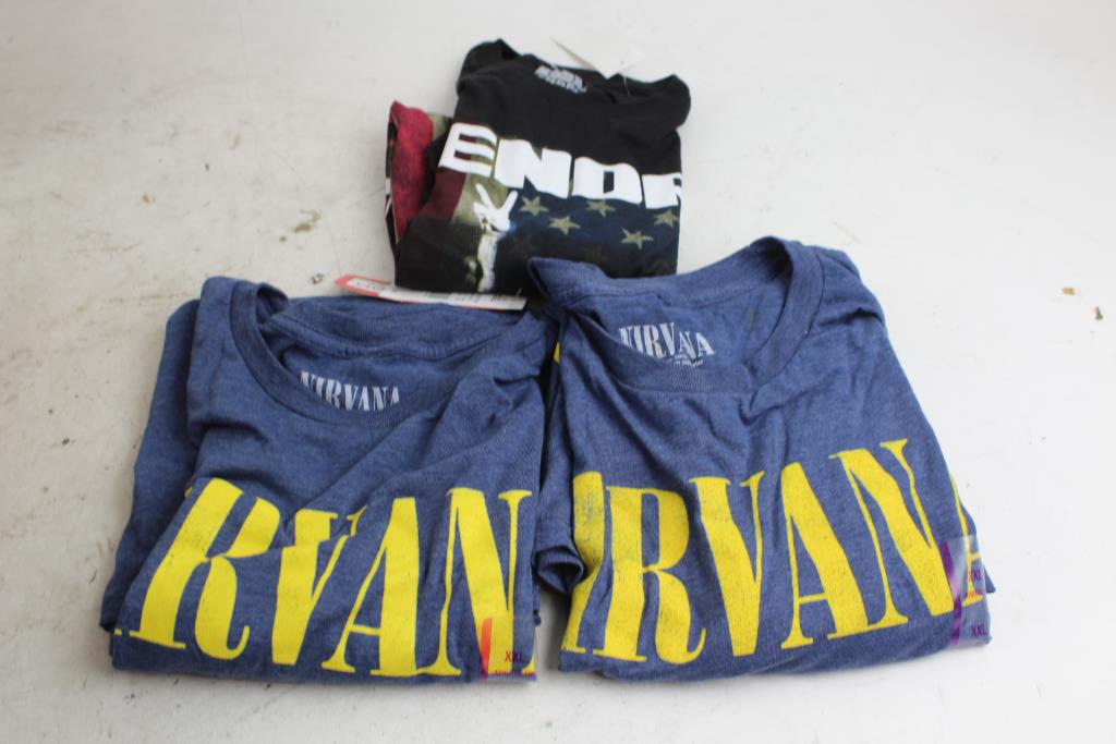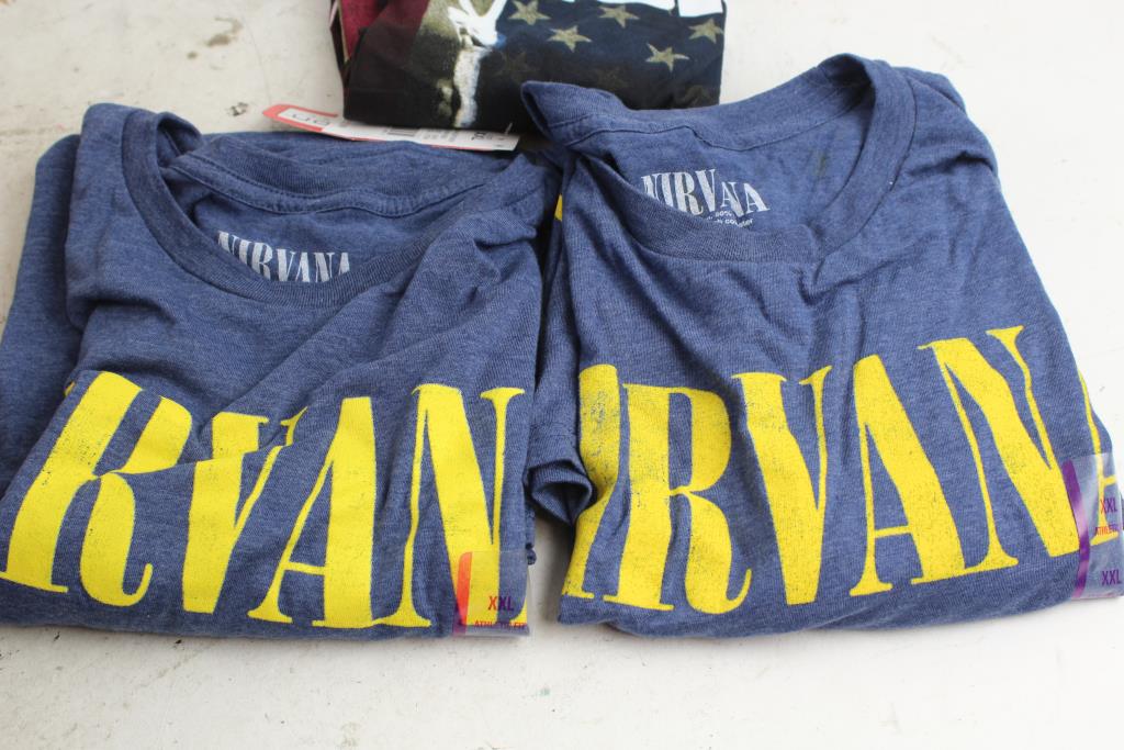 Get a great deal with this online auction for a clothing lot presented by Property Room on behalf of a law enforcement or public agency client. - Brands: Live Nation Merchandise Shirts: Hendrix, Nirvana: 3 Items