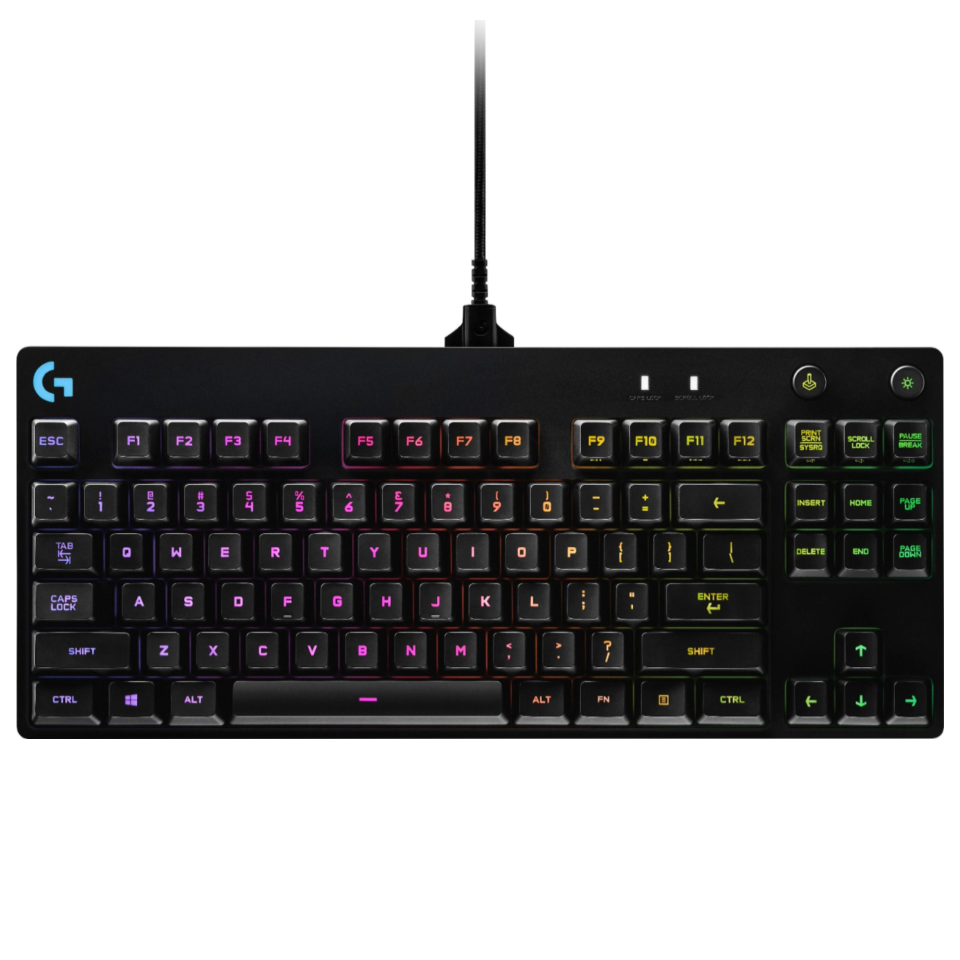 Logitech G Pro Gaming Mechanical Keyboard is designed and built to the exacting specifications of eSports athletes worldwide. Featuring the fastest and most durable Romer G switches in a compact and ultra portable ten keyless design, plus advanced performance built in: customizable Logitech RGB color lighting and lighting patterns, game mode button to disable Windows key and avoid accidental actuation, macros to execute complex commands in a single keystroke, 87 key anti ghosting and 26 key rollover for precision control, and onboard memory to store your lighting configuration. This is the wired Logitech keyboard designed to give you the competitive edge.