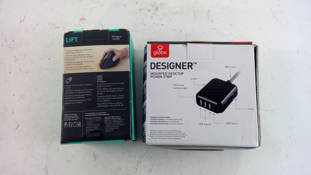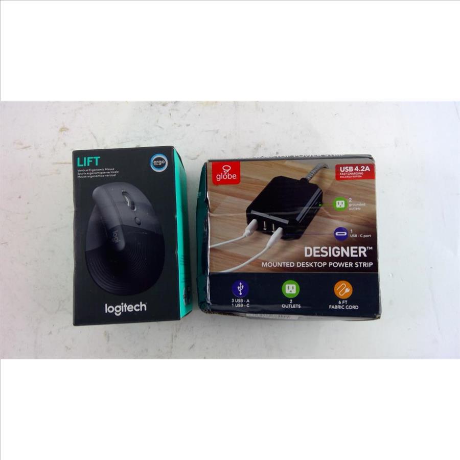 Logitech Wireless Mouse And Globe Mounted Desktop Power Strip